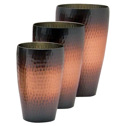 燕の伝統工芸技術、鎚起銅器の匠職人がひとつひとつ表面に目視着色技法で丹精込めて色付けした鎚目模様のタンブラーです。その色彩は熟練工が永い年月をかけ伝統工芸の技法を用い研究を重ねた仕上げ方法による逸品です。
