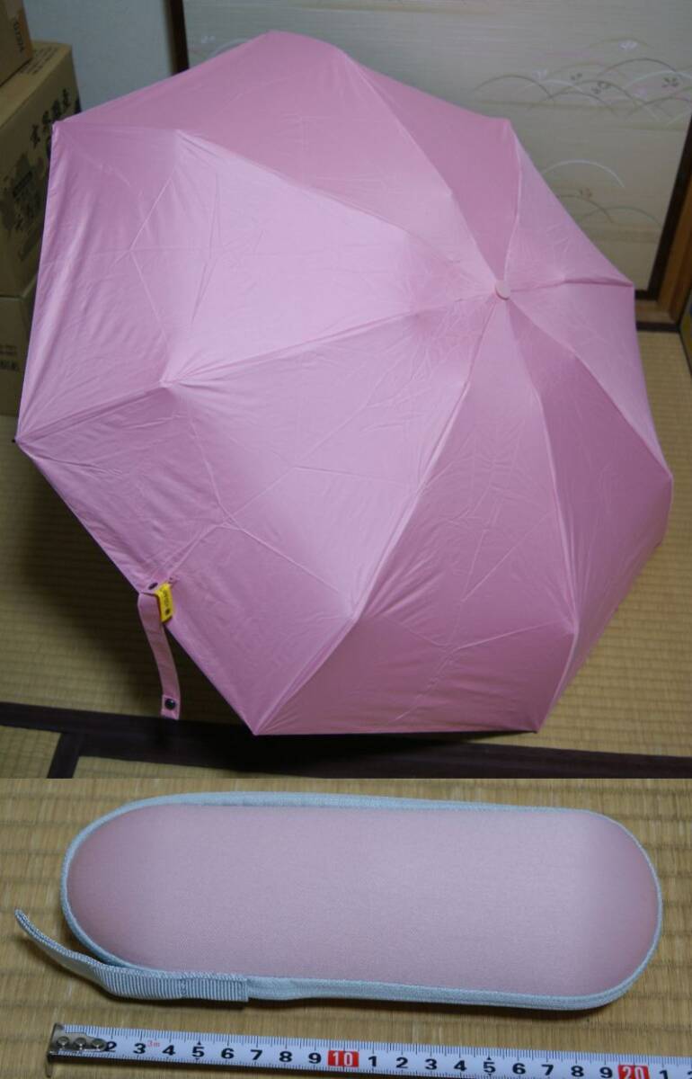 ■未使用 傘(ピンク)折りたたみ 晴雨兼用 日傘/雨傘 コンパクト ケース・カバー付き UPF50+ UV 遮光カット 直径約90cm 収納かばんに