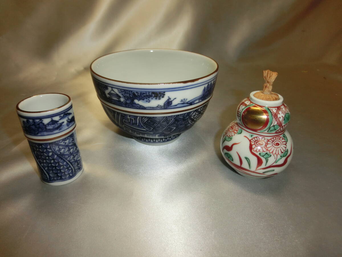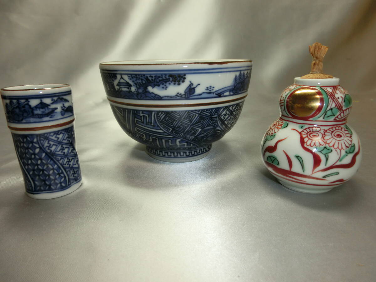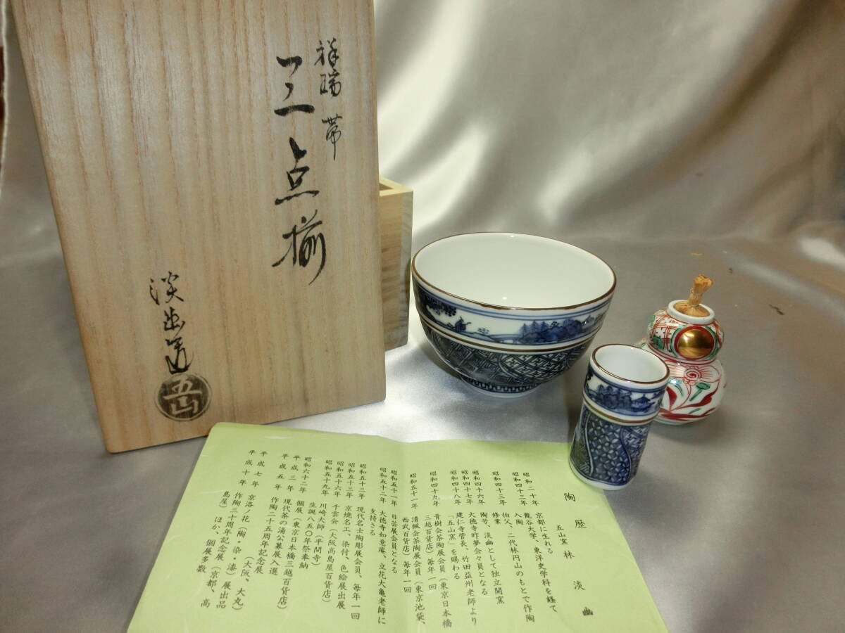 京焼 祥瑞 帯 三点揃 内2点 淡幽造  九谷 赤絵 振り出し 永寿造  数寄の寄せ組み