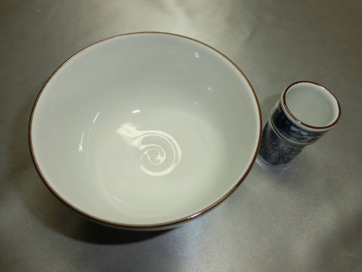 茶碗の周りの茶色い部分は鉄釉でかかれ傷欠けを防いでいます。