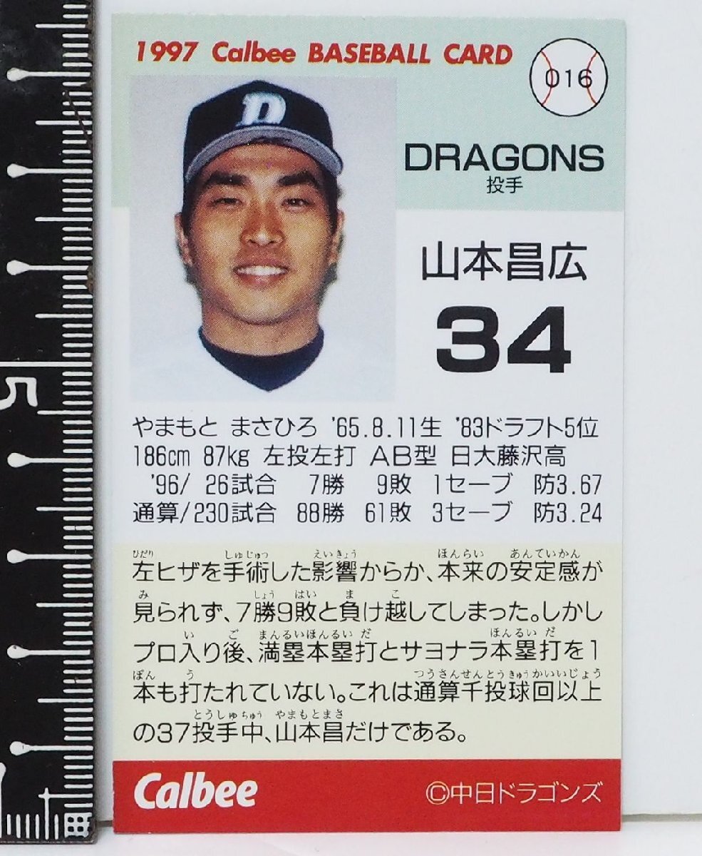 97年 カルビー プロ野球カード 016【山本 昌広 投手 中日ドラゴンズ】平成9年 1997年 当時物 Calbeeおまけ食玩BASEBALL【中古】送料込