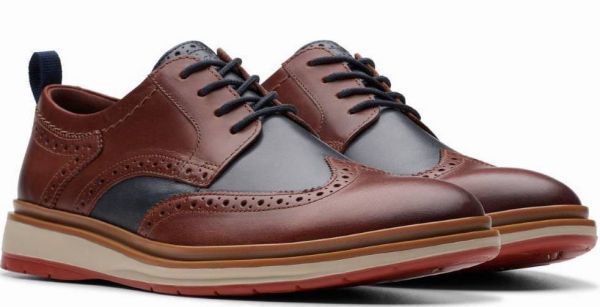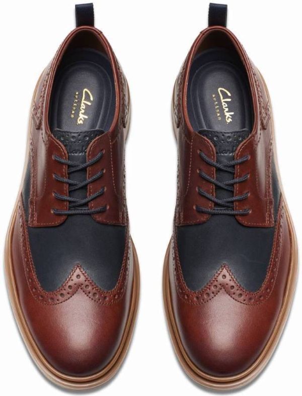 送料無料 CLARKS 26cm レースアップ 軽量 ウイングチップ ブラウン ネイビー レザー ビジネス スニーカー スーツ ブーツ XXX239
