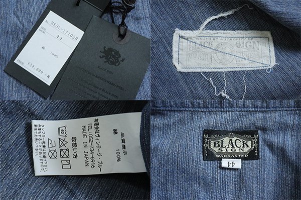 未使用 BLACK SIGN ◆ オープンポケット シャンブレー ワークシャツ 44 インディゴ (BSSL-17102B) ミリタリー ブラックサイン A78◆GG16