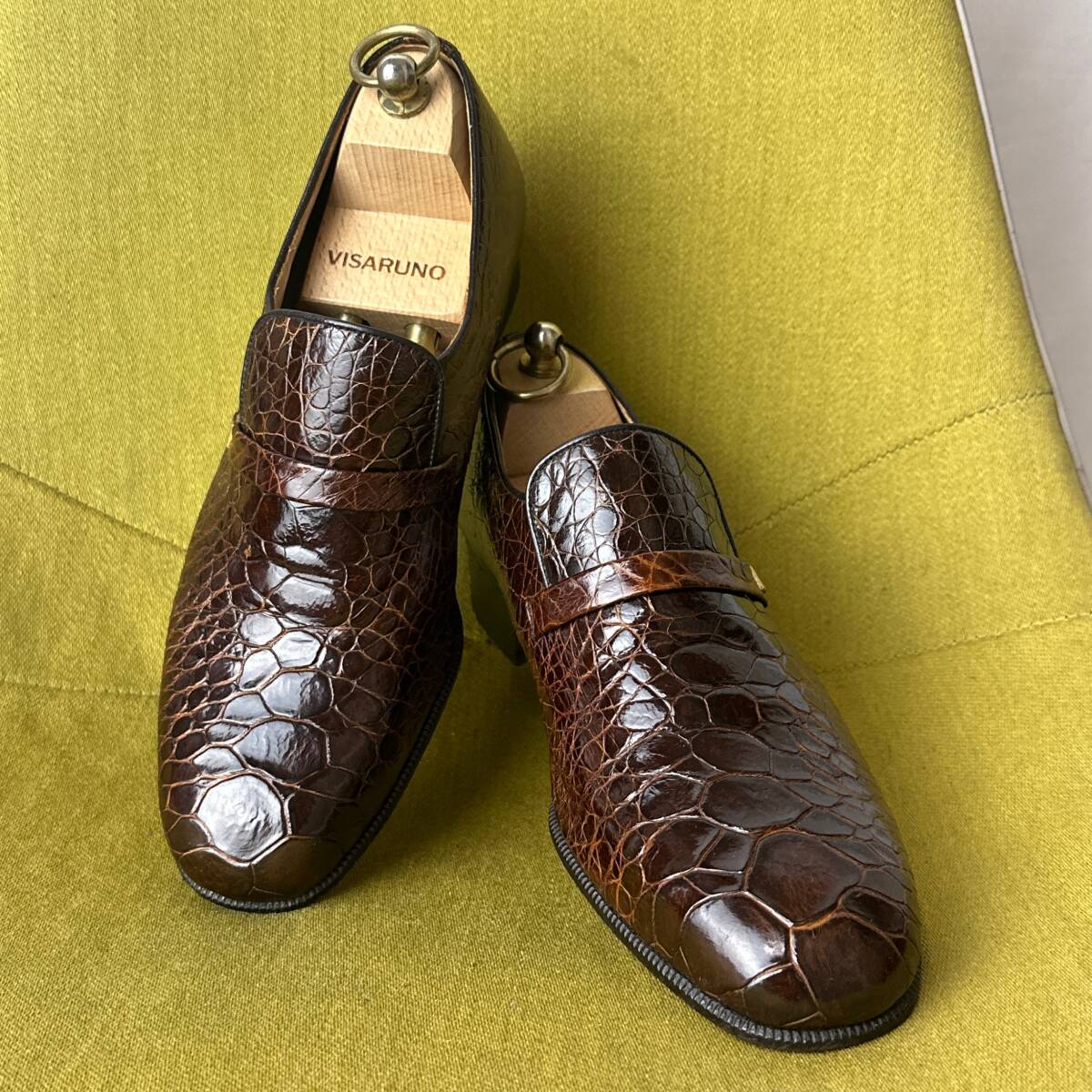 少し使用感があり、細かなスレ・傷がありますが、しっかり手入れしてありまだまだ履くことが出来ます。 非常に貴重な革で、独特の模様が美しいです。 | ||||||