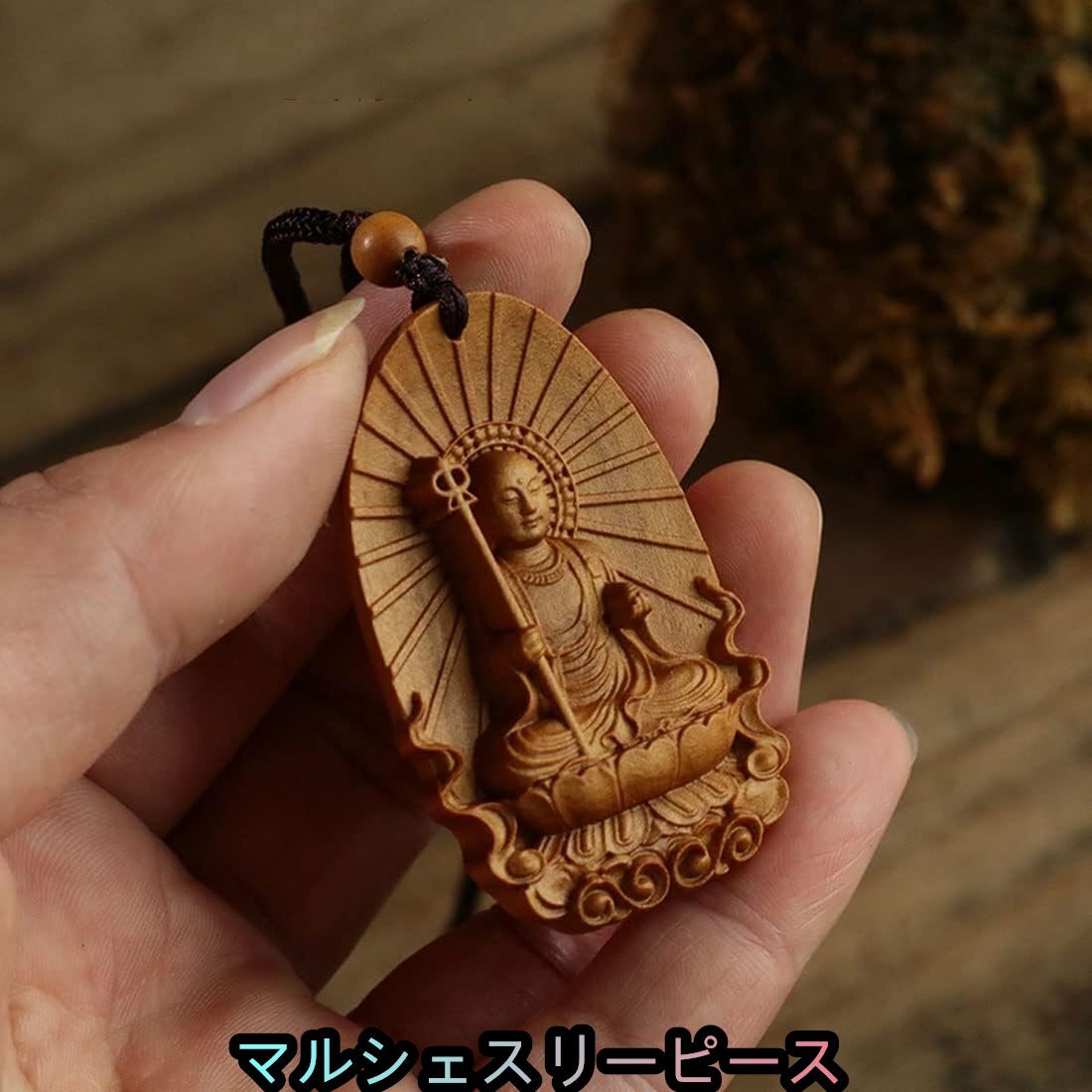 木彫り 仏像【地蔵菩薩】ペンダント ネックレス 木彫り オーストラリア 白檀 香木 木製彫刻 仏像 お守り 高さ5.5cm 厄除け 開運 風水 縁起