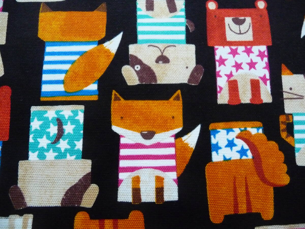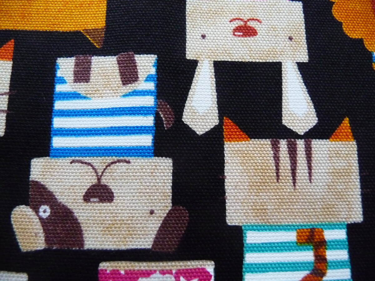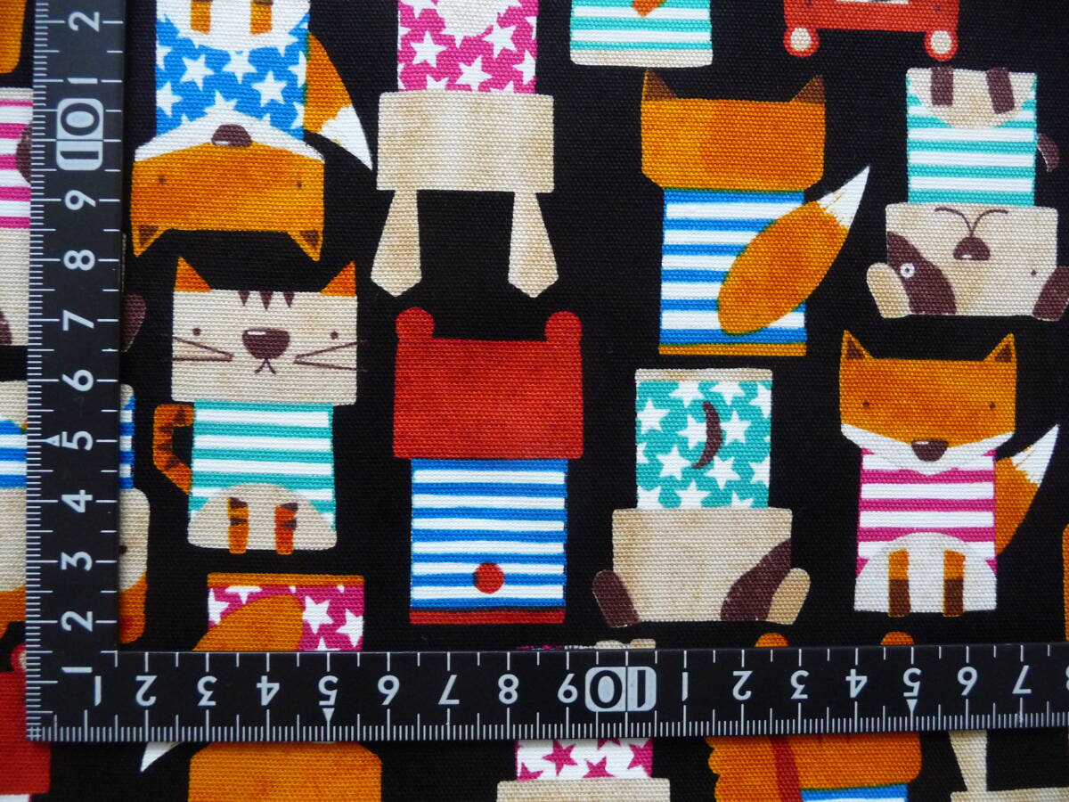 ◆布地はぎれ◆綿オックス生地◆動物◆黒◆約110×100cm◆ネコ◆犬◆クマ◆ウサギ◆アニマル