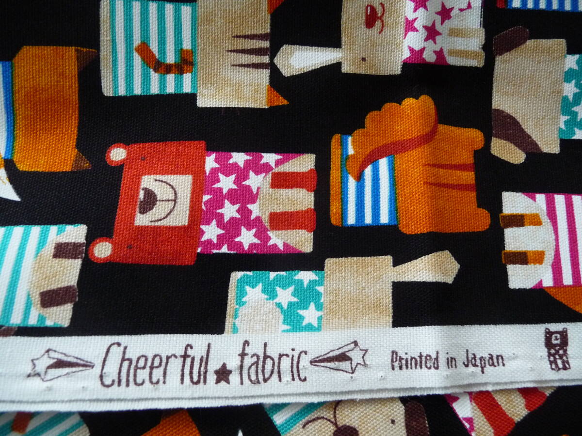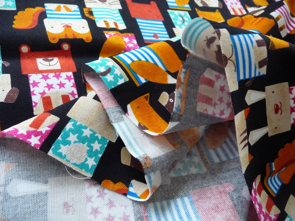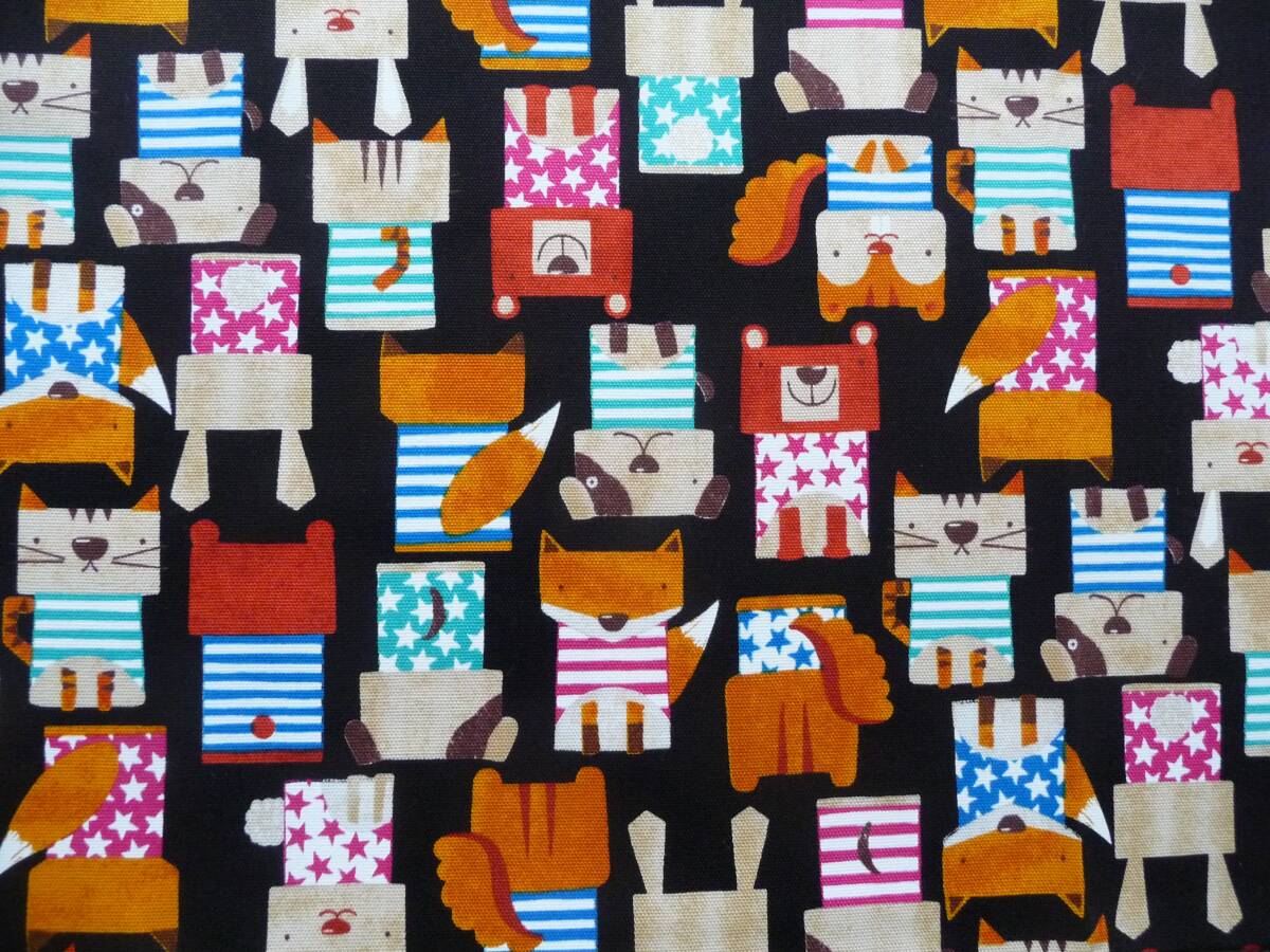 ◆布地はぎれ◆綿オックス生地◆動物◆黒◆約110×100cm◆ネコ◆犬◆クマ◆ウサギ◆アニマル