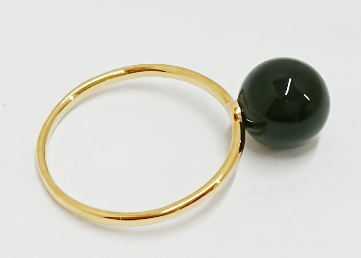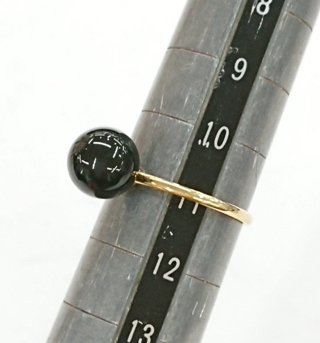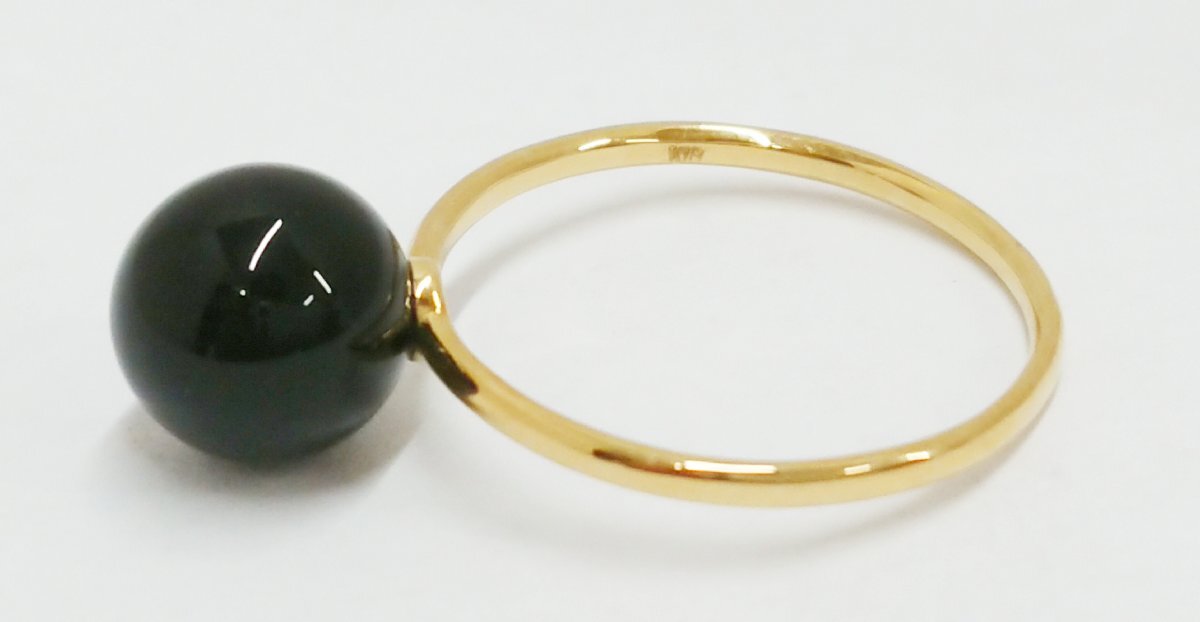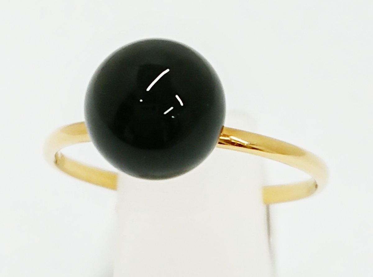 丸玉♪シンプル♪K18 18金使用 オニキス 約8mm 指輪 リング 約11号