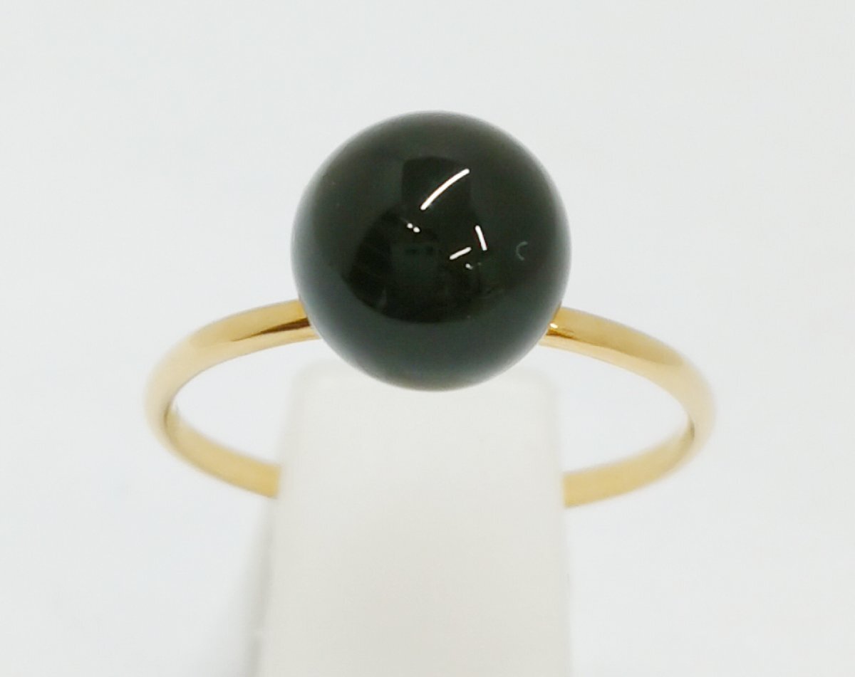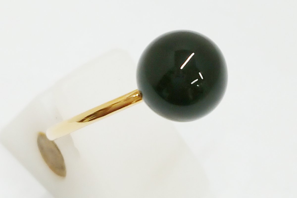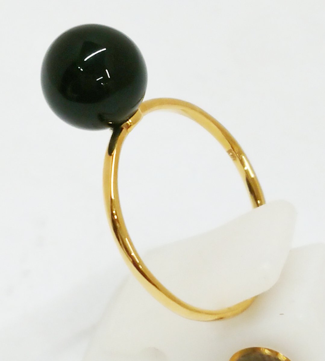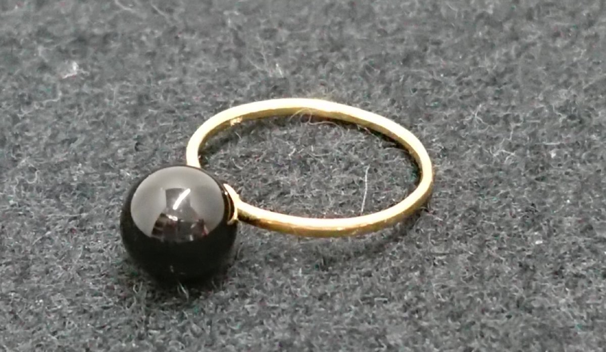 丸玉♪シンプル♪K18 18金使用 オニキス 約8mm 指輪 リング 約11号