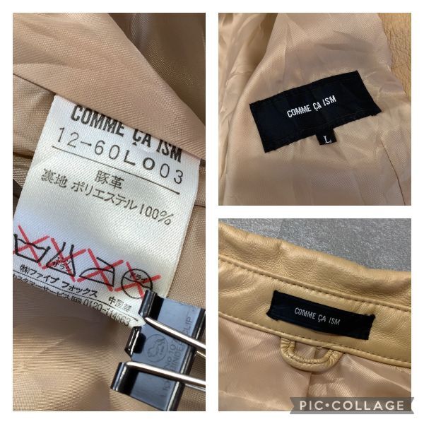 【本革 豚革】COMME CA ISM コムサイズム 本革 ピッグレザー シングルライダース レザージャケット レディース Lサイズ ベージュ