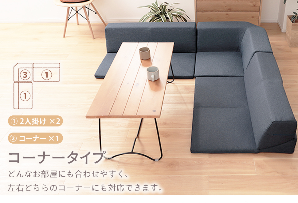 マットとソファが1つになったローソファ。