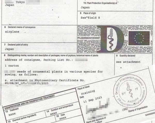 2023年9月に届いた種子です。