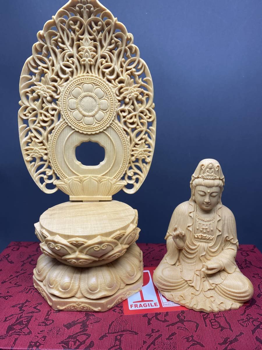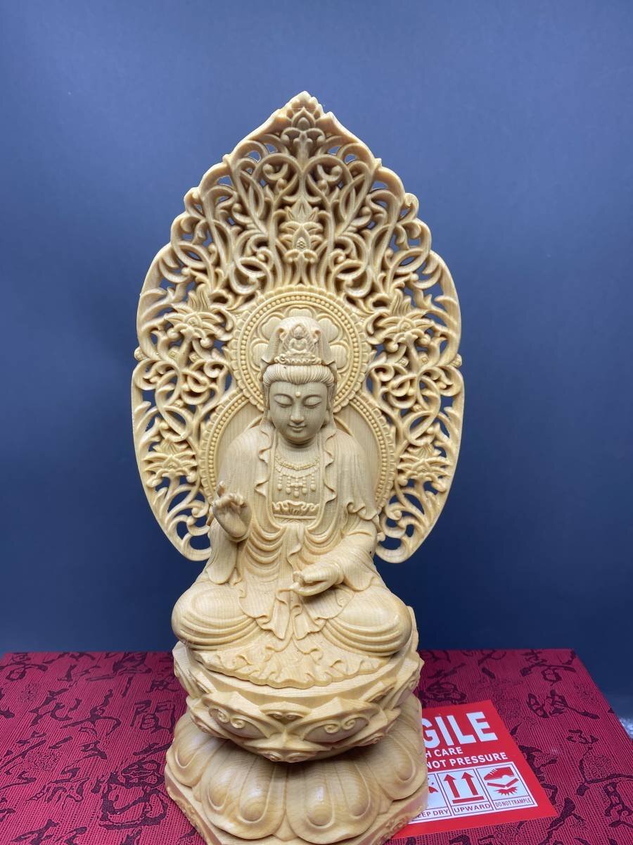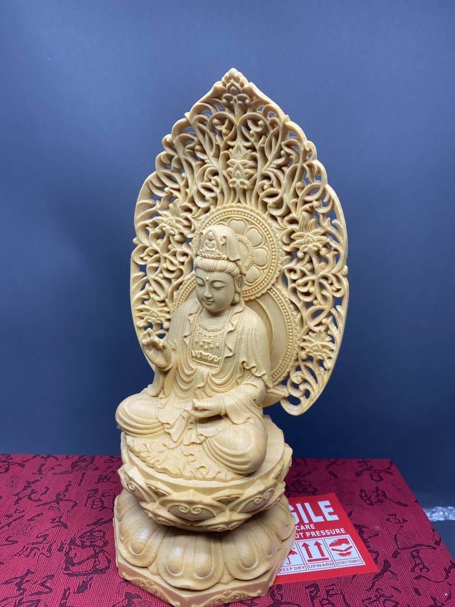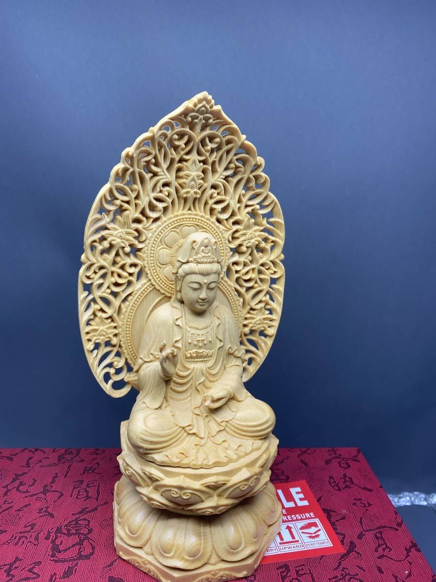特上彫 観音菩薩 観音像 観音菩薩像 仏像 職人手作り 鎮宅辟邪 仏教美術品 木彫り細密彫刻 総柘植材
