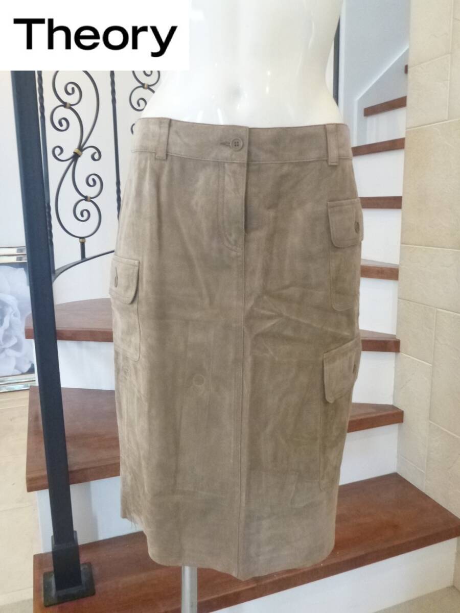 4.5万 美品 Theory セオリー★ベージュ 本革レザー スカート 2 M相当