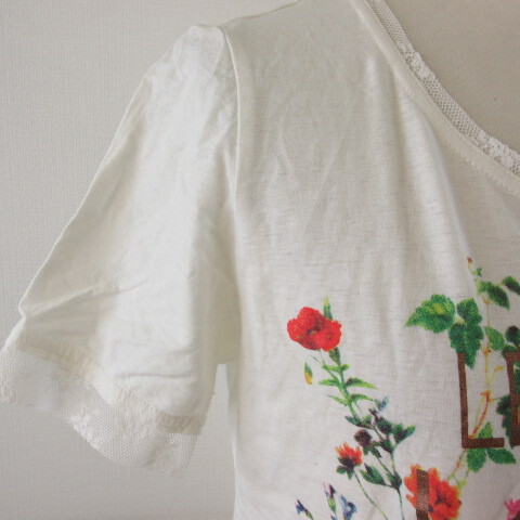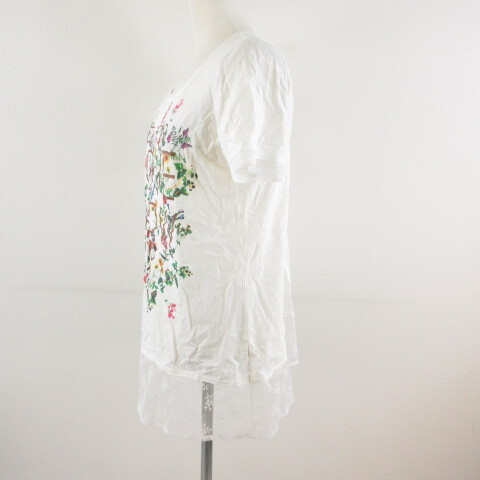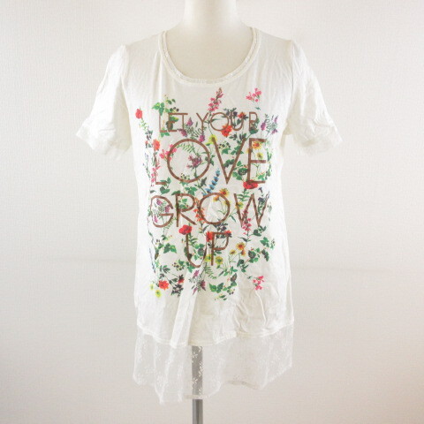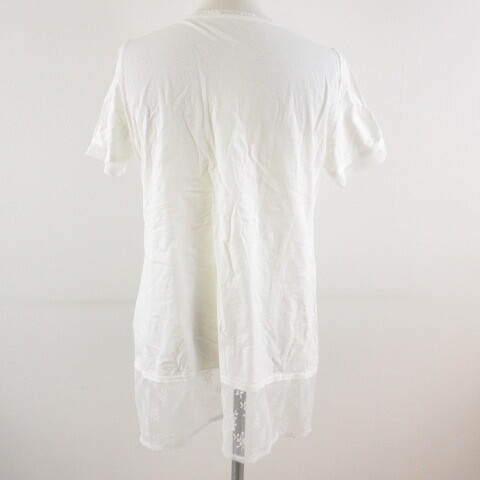 TOPTOPOLO チュニック Tシャツ 半袖 プリント レース 白 40 *T923 レディース