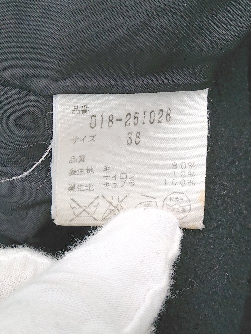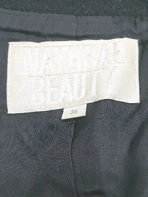 ◇ NATURAL BEAUTY ナチュラルビューティー シンプル 無地 ウール混 長袖 ピーコート サイズ36 ブラック レディース P