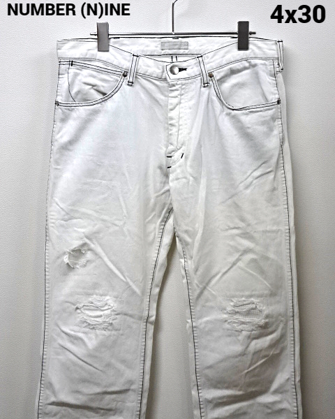 4x30 02SS【NUMBER (N)INE リペア&クラッシュ加工ブリーチデニムパンツ モダン期 宮下期 ナンバーナイン ホワイト パンツ ririジップ】
