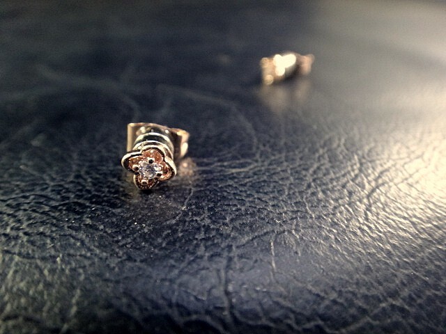 CZ"キュービックジルコニア”フラワーの中央に1石留めた マグネット ピアスです。