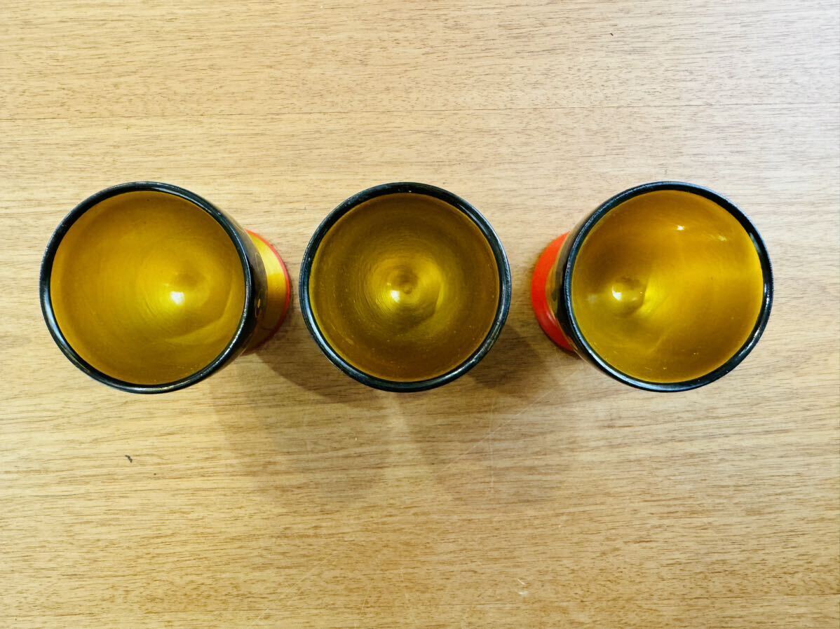 ロシア民芸品 ホフロマ塗り 器 木製 乾杯グラス 3個セット まとめて
