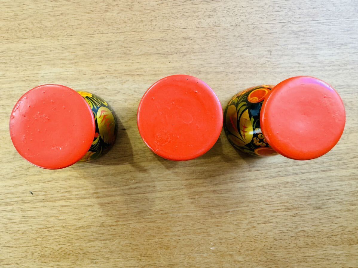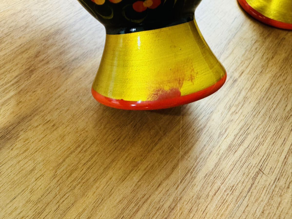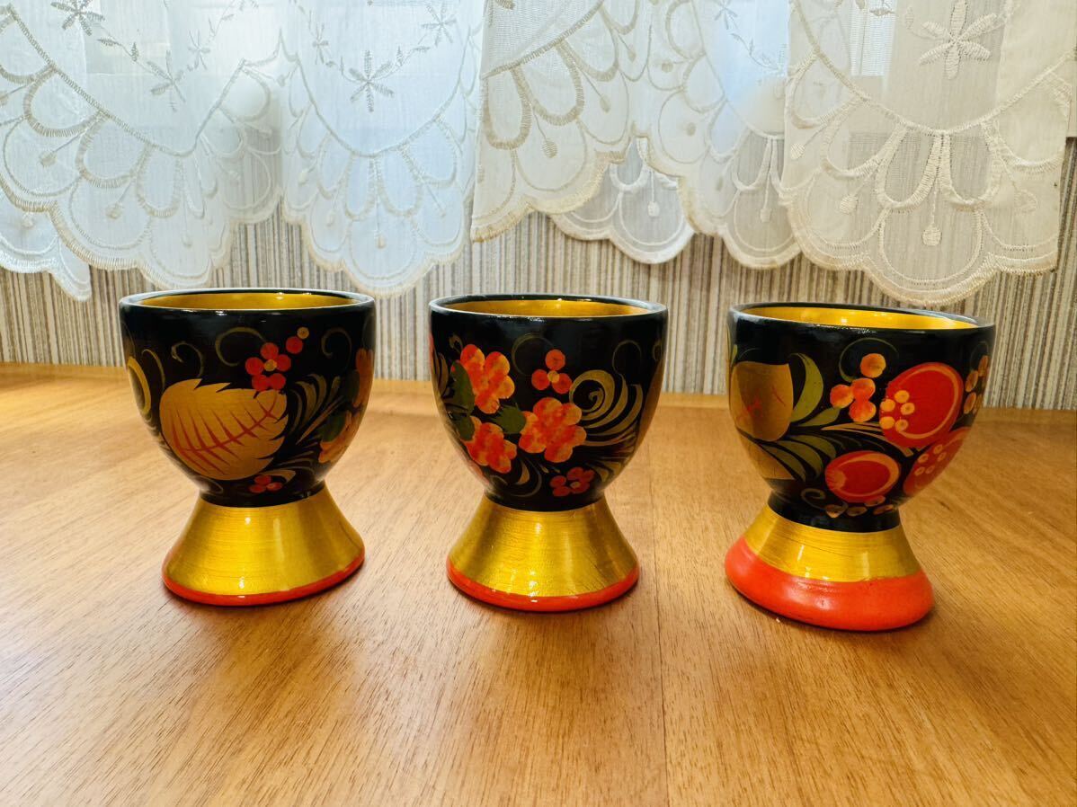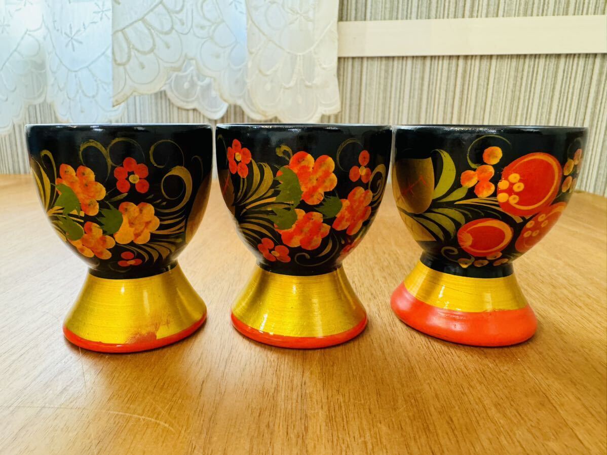 ロシア民芸品 ホフロマ塗り 器 木製 乾杯グラス 3個セット まとめて