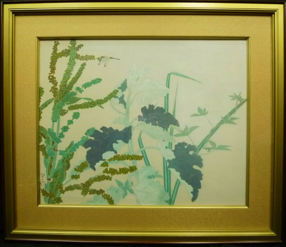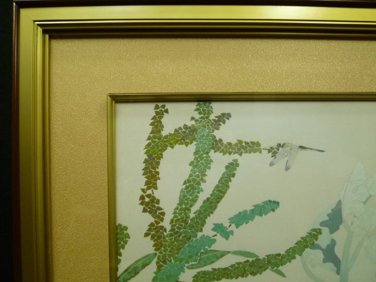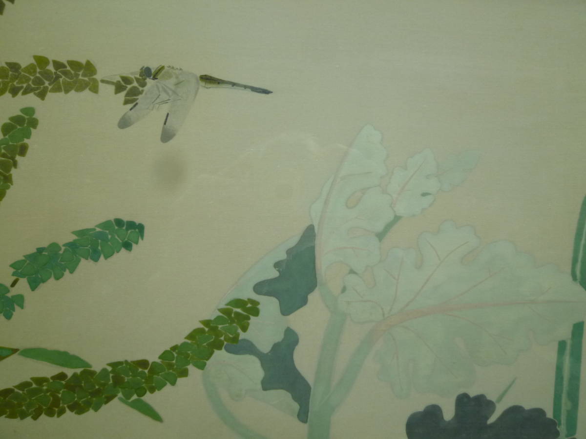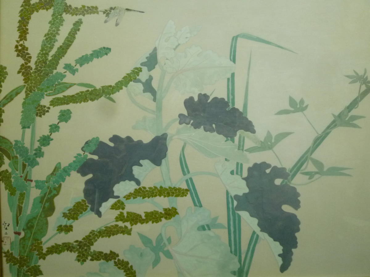 草花図  堅二らしく 、静かさが感じられる、トンボが葛の花と一体。