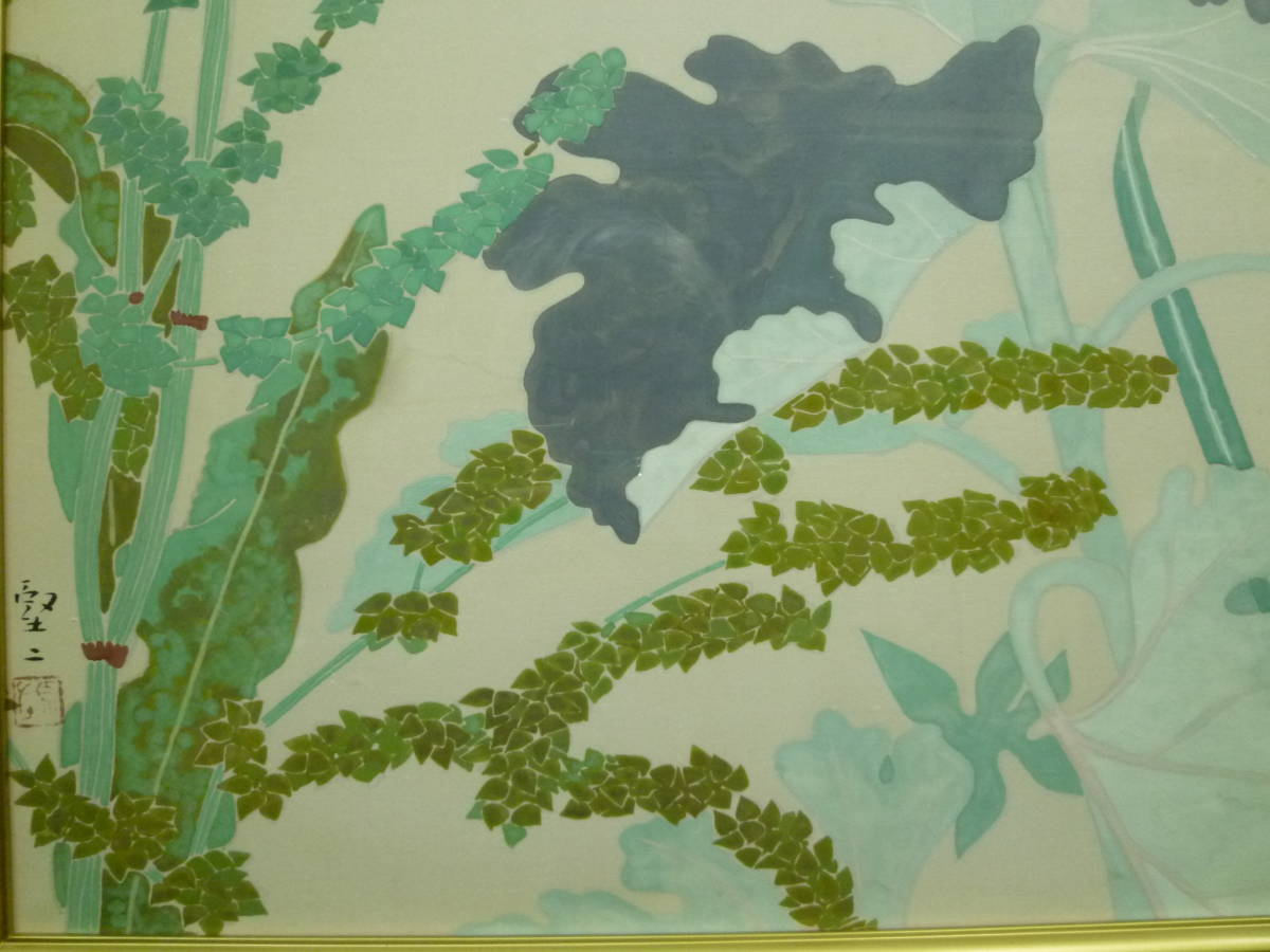 真作 吉岡堅二 草花図絹本日本画20号 創画会員 日本芸術院賞 芸大教授名誉教授 師・野田九浦 日展在籍審査員歴任