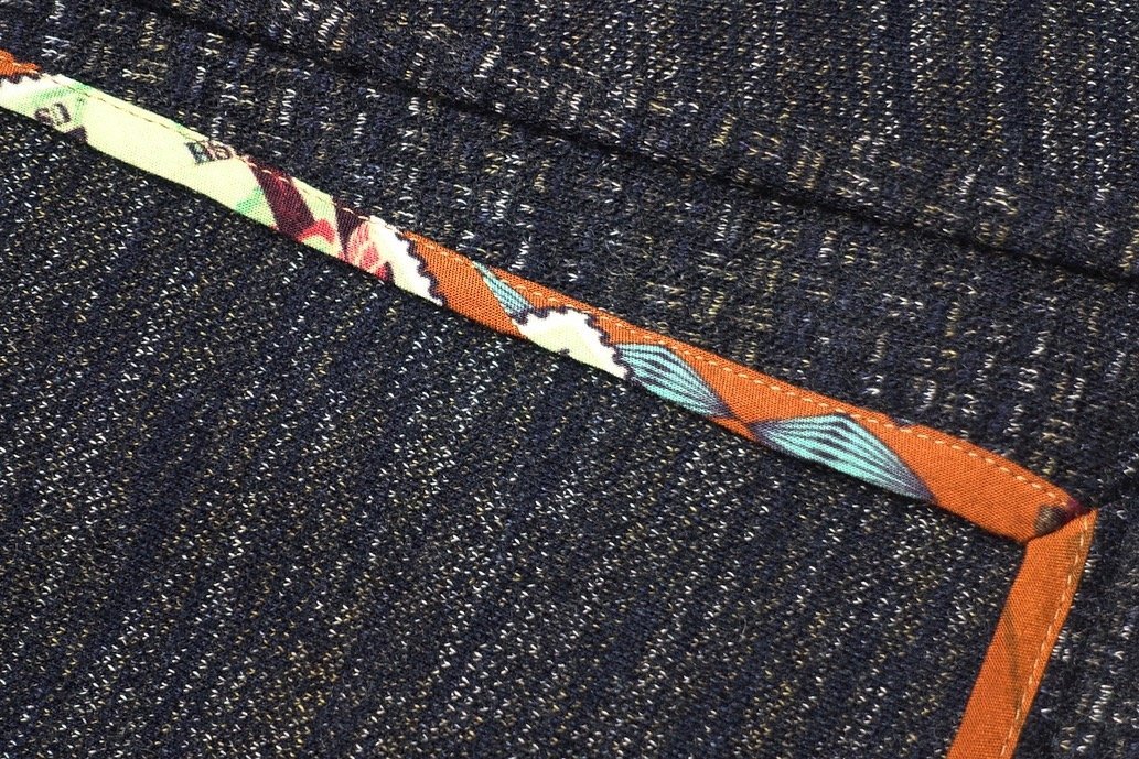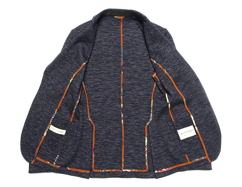 18AW 極美品 ETRO エトロ NUOVO JERSEY マルチステッチ フランネル テーラードジャケット ネイビー ボタニカルモチーフ和風柄 メンズ 44