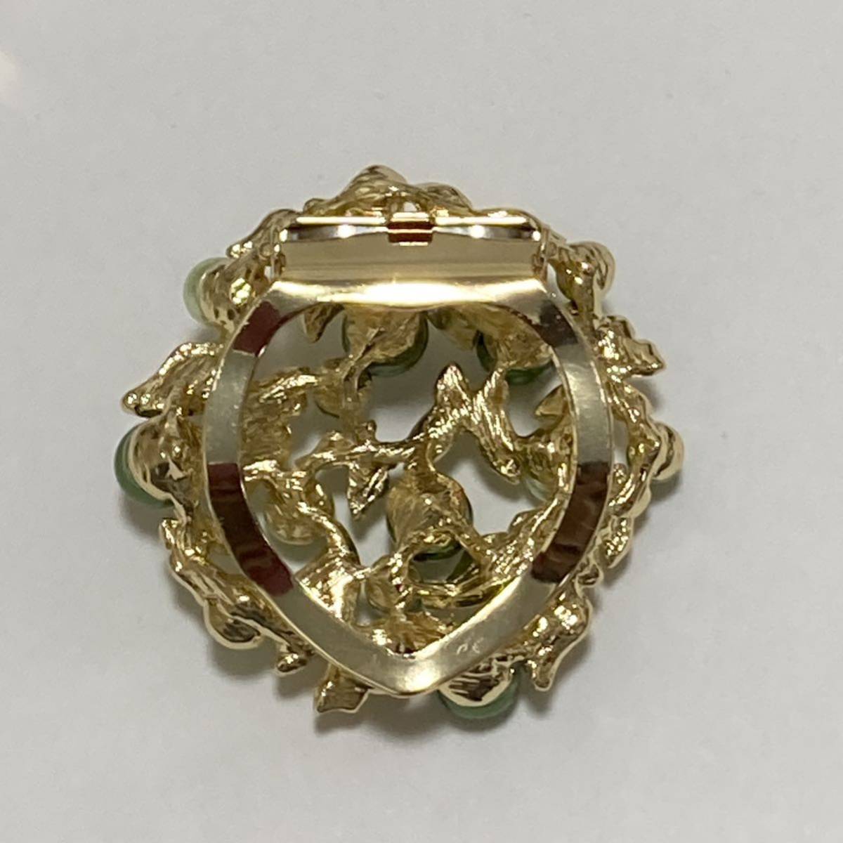 緑のパールが色合い良く綺麗でスカーフやお洋服に映えると思います。
