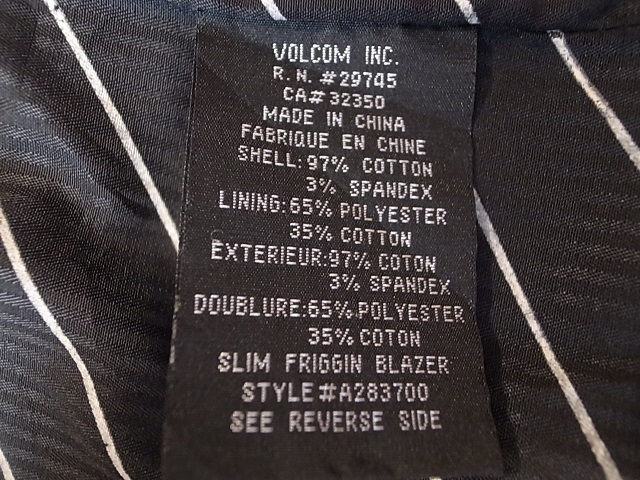 ◆ブランド 「VOLCOM」 アメリカ古着 ●サイズ表記 S 肩幅…45cm(肩先から肩先の間の長さ) 身幅…53cm(両脇を横直線に結んだ長さ) 着丈…72cm(後衿ぐり中央から後身頃裾) 袖丈…64cm(袖付けの肩先から袖先) ※平置き状態での素人採寸ですので、多少の誤差はご了承ください。 ●素材…CORRON97% SPANDEX3% オールシーズン対応 ●色…黒 ●ベント…ノーベント ●ポケット…フラップポケット ●裏地…総裏 アンコン仕立て 肩パッドなし ●製造国表記…CHINA ●状態…多少の使用感はございますが状態良好です。 ★送料 全国一律 700円 佐川急便 (北海道900円 沖縄その他離島1700円) ※複数ご購入の場合、同梱発送可能です。 |