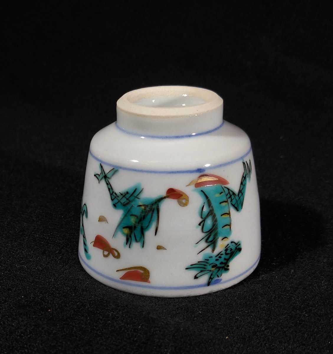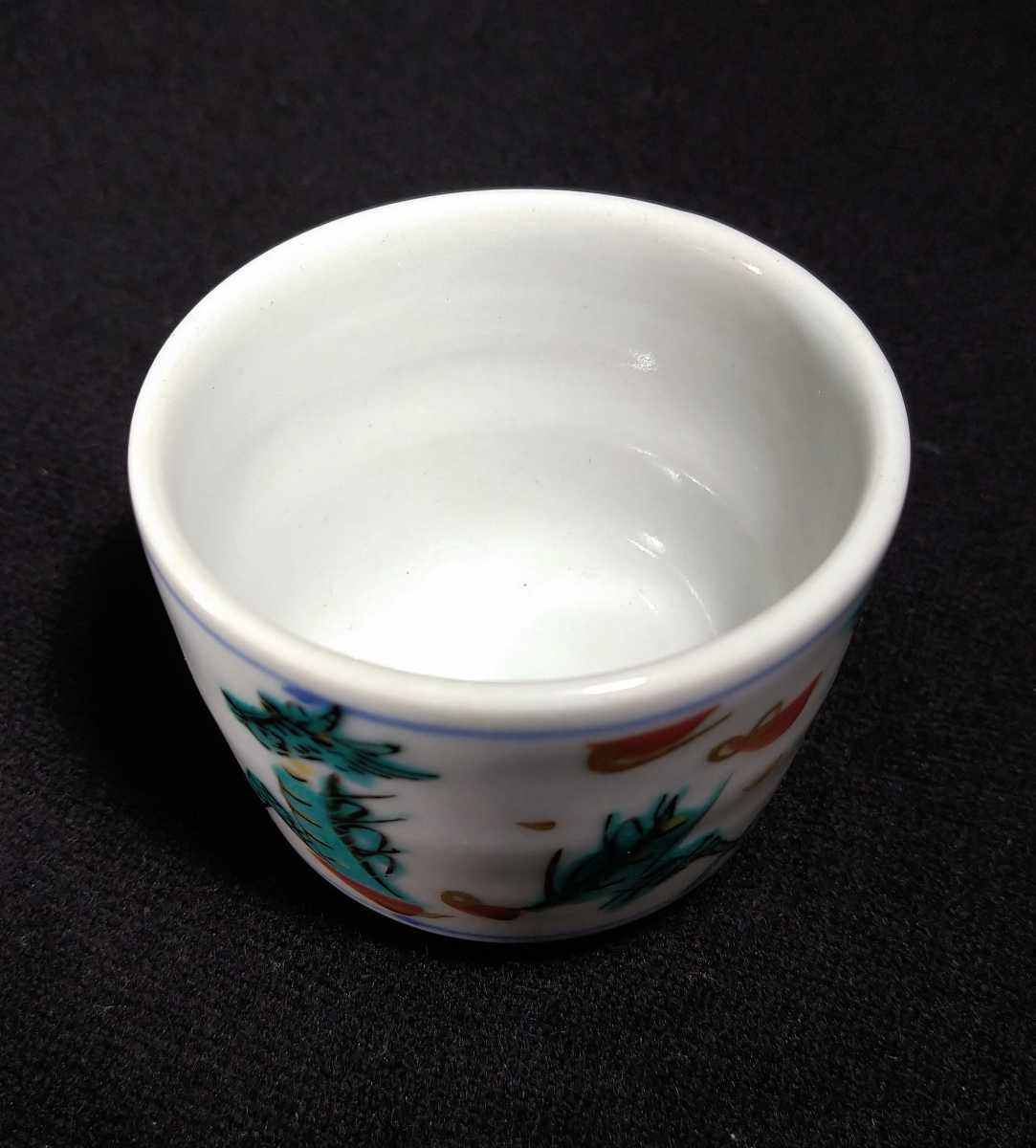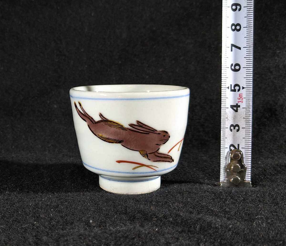 躍動感溢れる兎とコミカルな龍が描かれた、中田明守(1934-)先生の美しい酒盃でございます。底に小さなニュウがございます。素人採寸で申し訳ございませんが、径