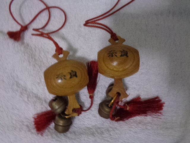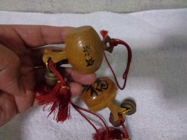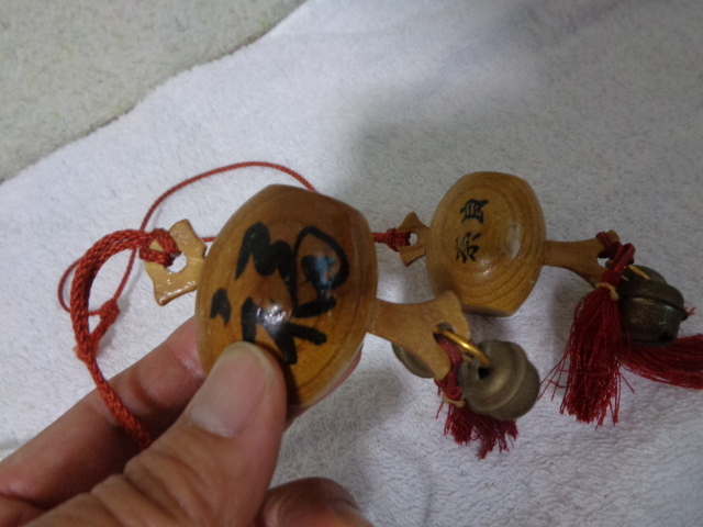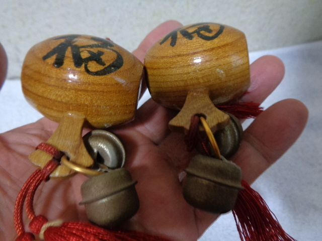 木製 ミニ 打ち出の小槌 2個まとめて/奈良県土産物?/鈴付き/ストラップも可/長期経過品/