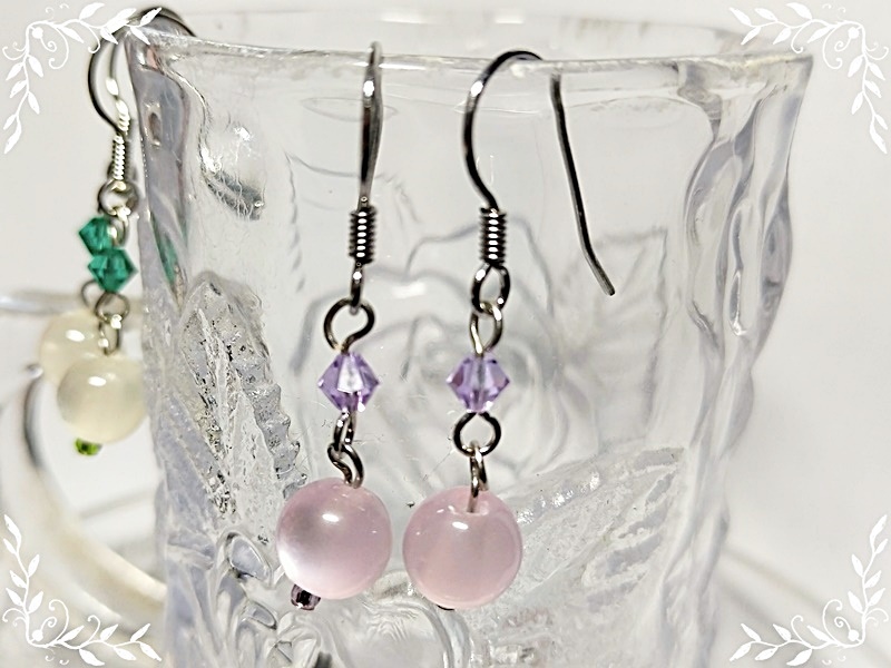 材料:キャッツアイ、スワロフスキー、9ピン、ピアスフック