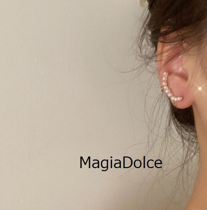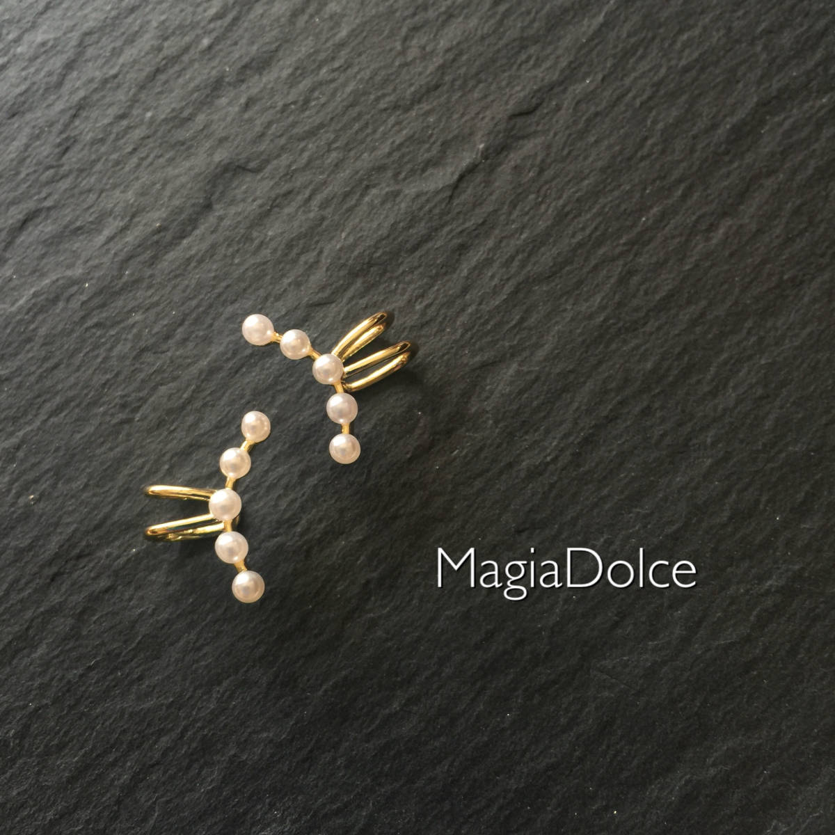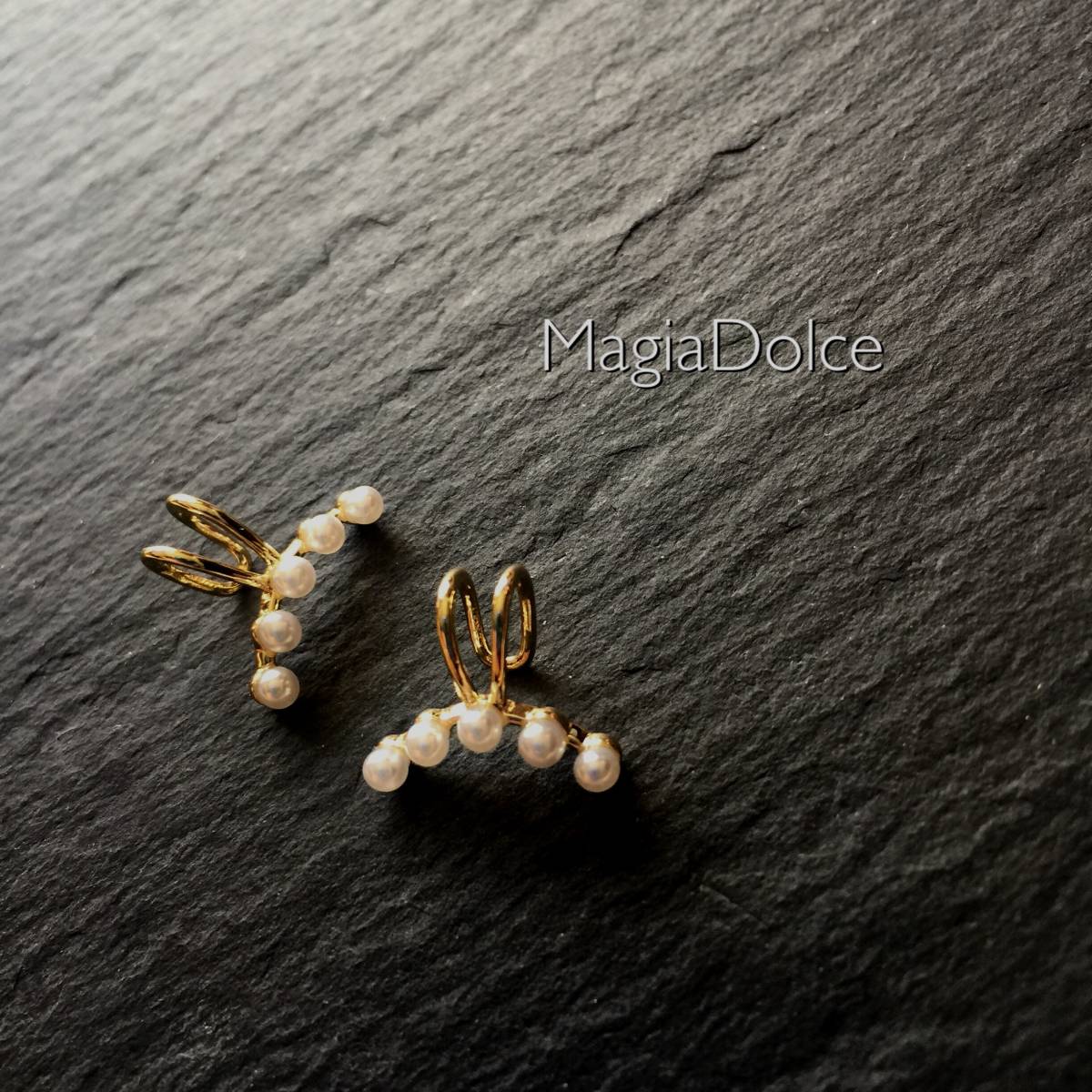送料無料*MagiaDolce 5513●5連パールイヤーカフ ゴールドイヤーカフ ゴールドパールピアス シンプルイヤーカフ 両耳上品イヤリング ピアス