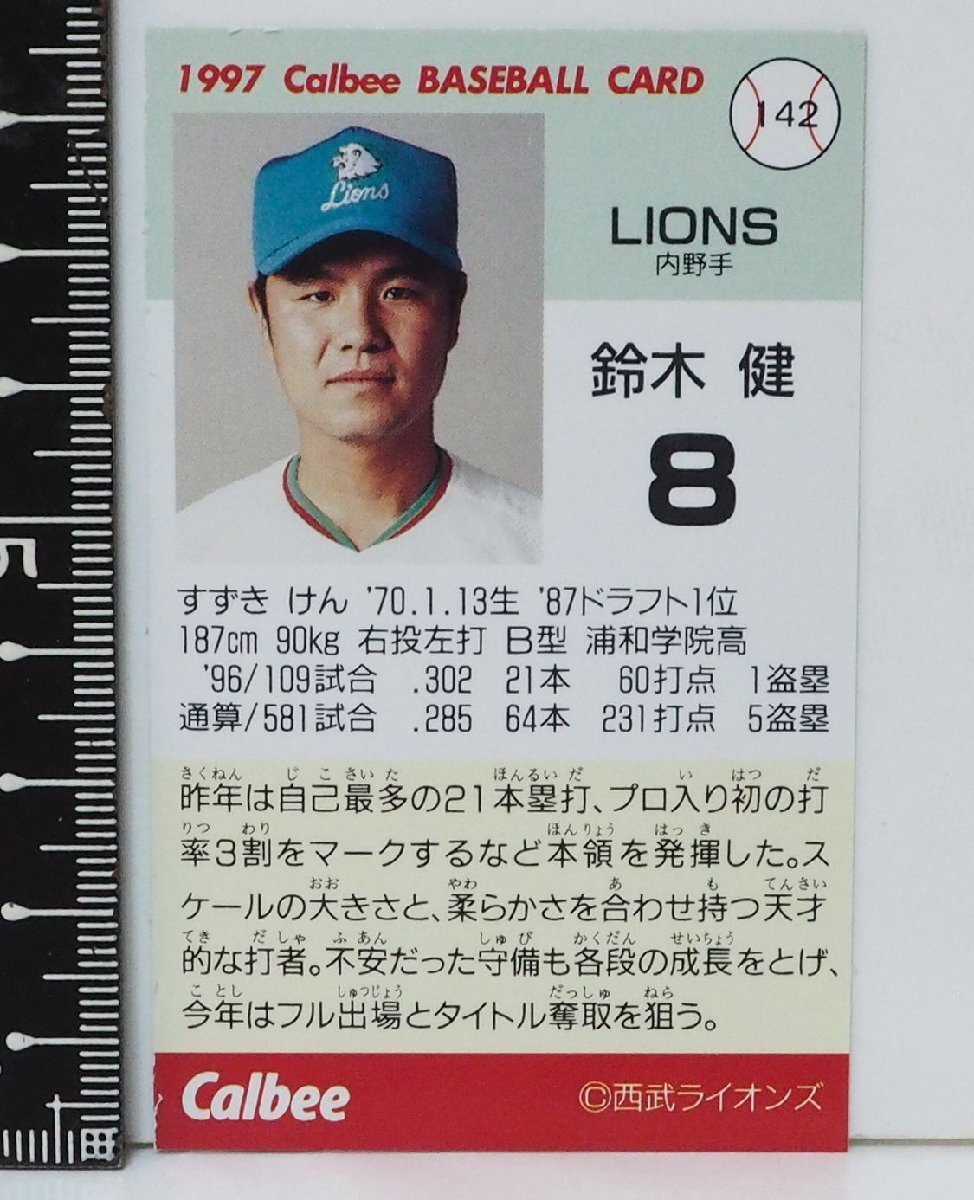 97年 カルビー プロ野球カード 142【鈴木 健 内野手 西武ライオンズ】平成9年 1997年 当時物 Calbeeおまけ食玩BASEBALL【中古】送料込
