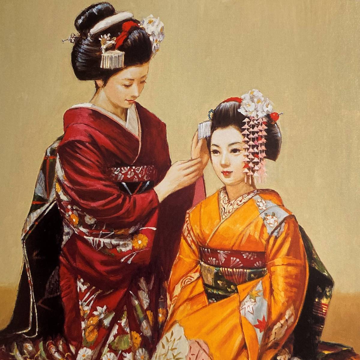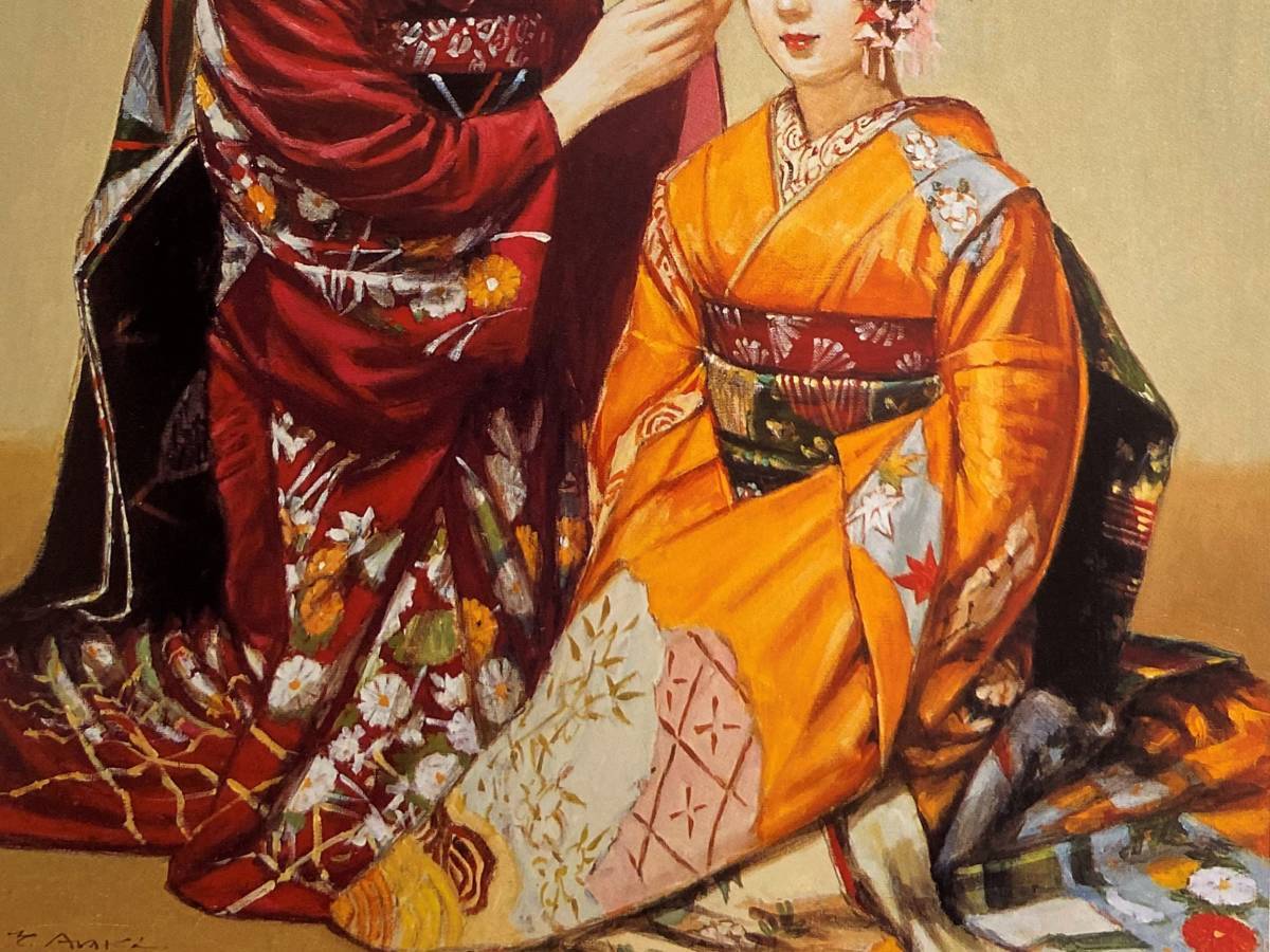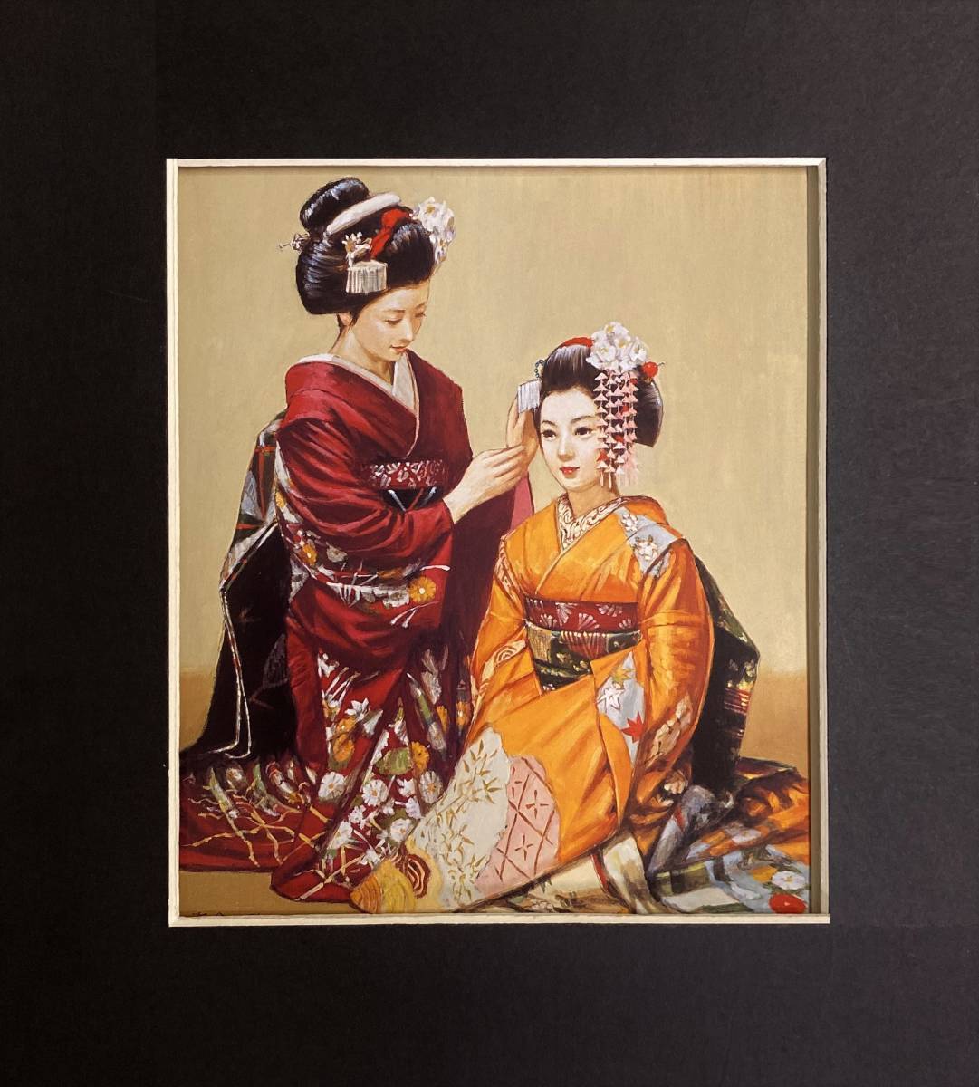 荒木義太郎、【二人の舞妓】、希少な額装用画集より、厳選、新品額装、マット額装付、状態良好、送料込み