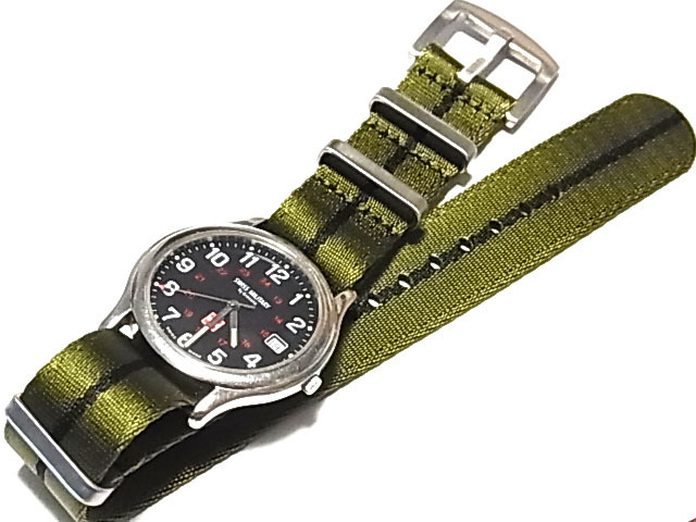 高品質ファブリック NATOタイプ 光沢 なめらか素材 軍緑+黒 22mm 28NTFAB11 [new] 未使用