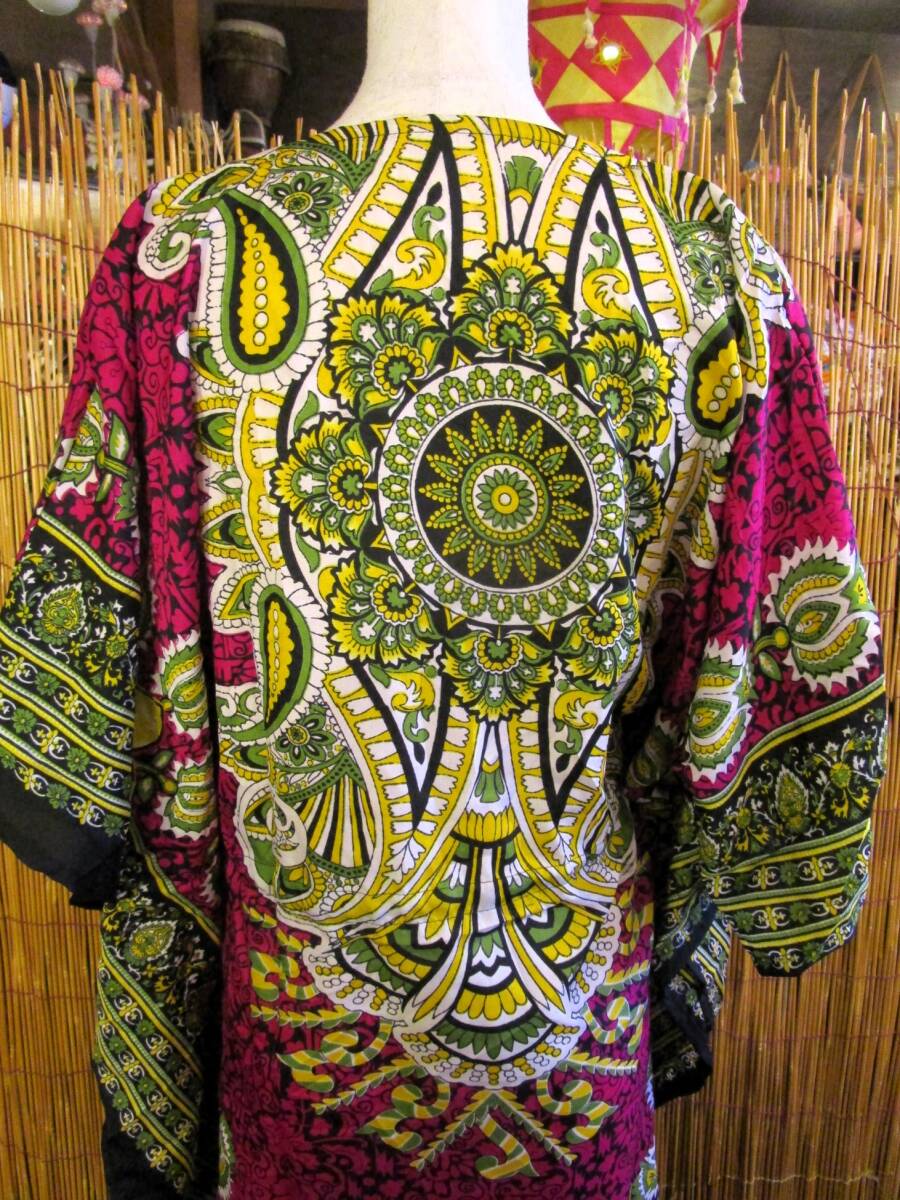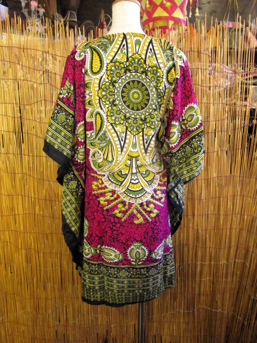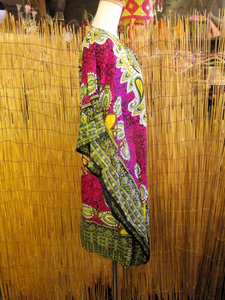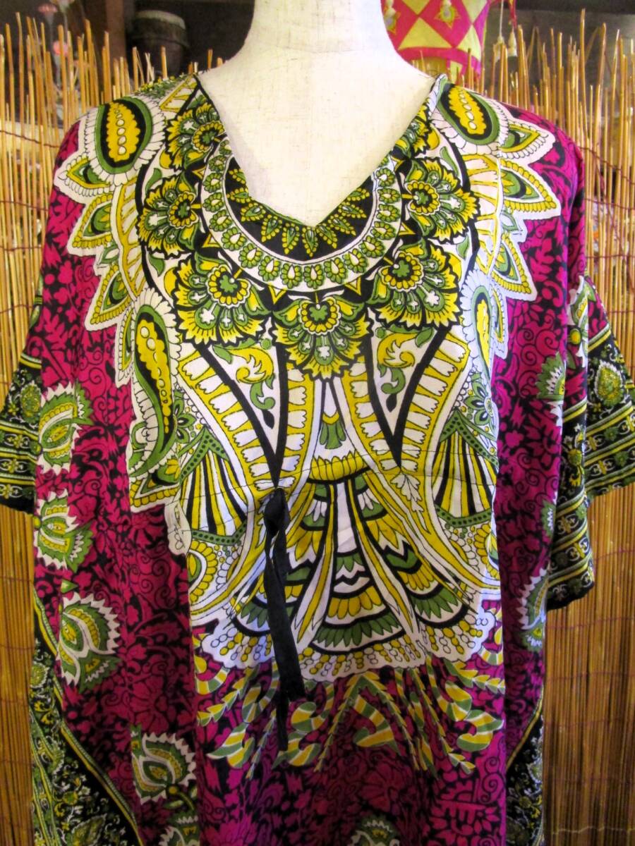 ①新品*薄手ビスコース素材*ゆったりサイズ *アジアンプリント*ガラベーヤ*ポンチョ風*ミドル丈*ワンピース*ベリーダンス
