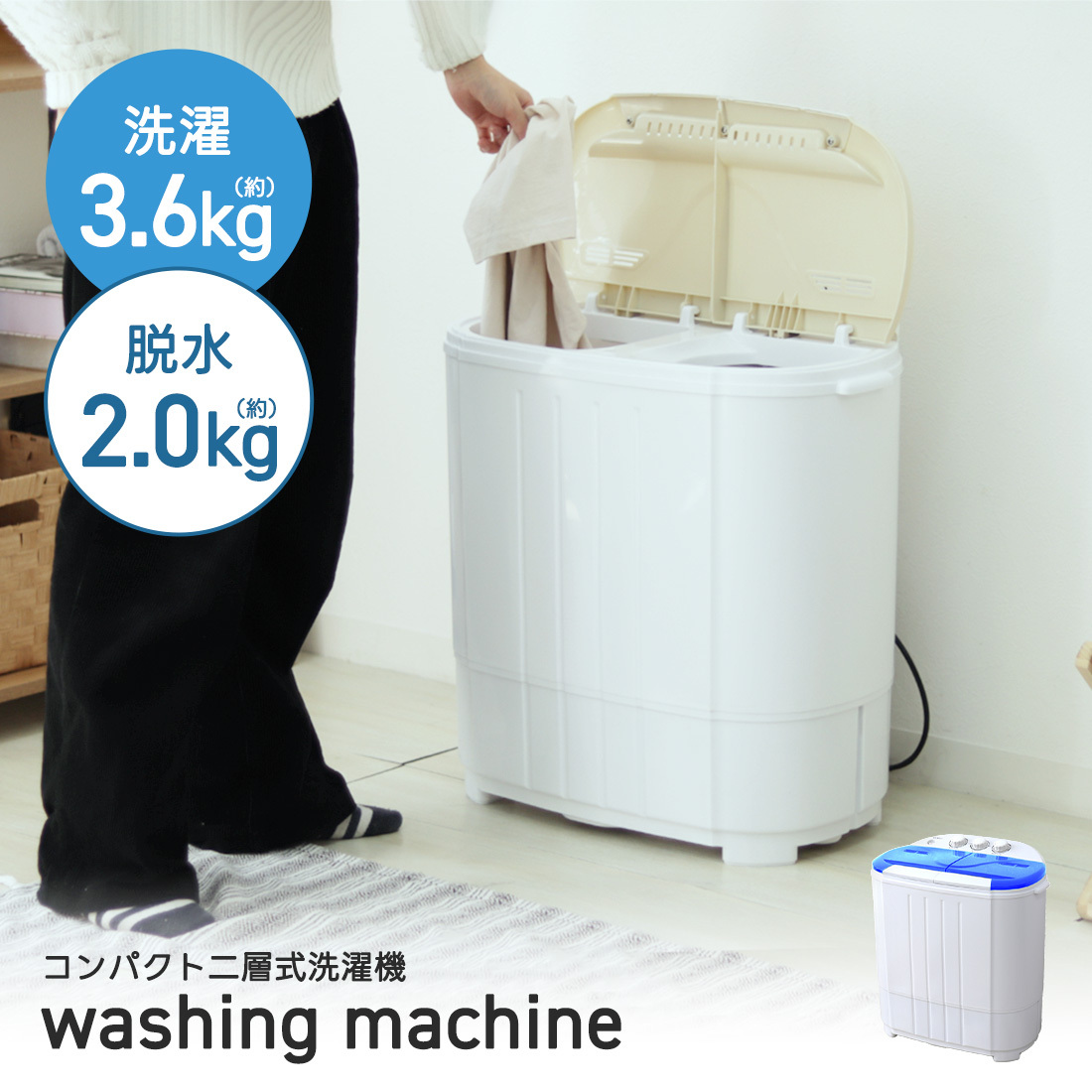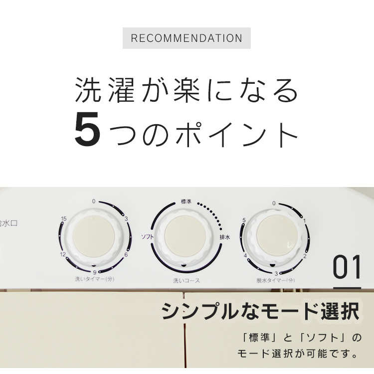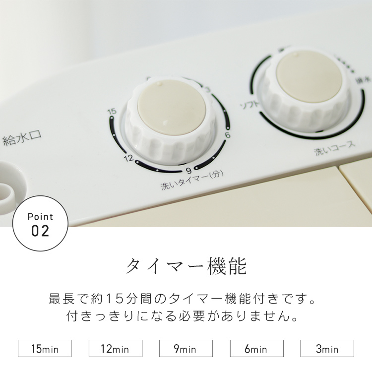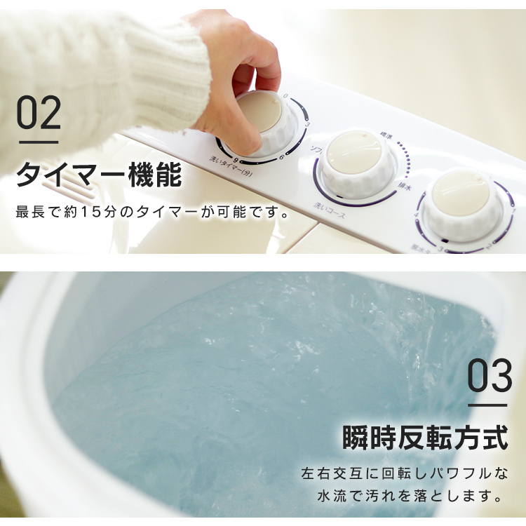 | 【安心の1年保証付き】 コンパクトだから場所も取らずにちょこっと洗いで節水もできます。 少量の洗濯物や洗い分けに最適! 二槽式だからしっかり洗えてしっかり脱水可能! ★こんな場合にオススメ!★ ・ガーデニングや作業で汚れた軍手やエプロンの洗濯 ・学校や部活動で汚れたシューズや服の下洗い ・ベビー用衣類の洗濯 ・海水浴後の水着の洗濯 ・別洗い用のサブ機として 【商品内容】 本体 脱水用おさえさえフタ 吸水ホース 【商品詳細】 カラー:ブルー サイズ:(約)幅550×奥行360×高さ590mm 重量:(約)(約)9kg 洗濯容量:3.6kg 電源:AC100V 50/60Hz コード長:(約)1.5m 防水性能:IPX4 ※本製品の脱水は、簡易脱水となっております。あらかじめご了承ください。 ※水がこぼれても大丈夫な風呂場やベランダなどでのご使用をオススメします。 ※入荷時期によってボタンの色が商品画像と異なる場合があります。 |