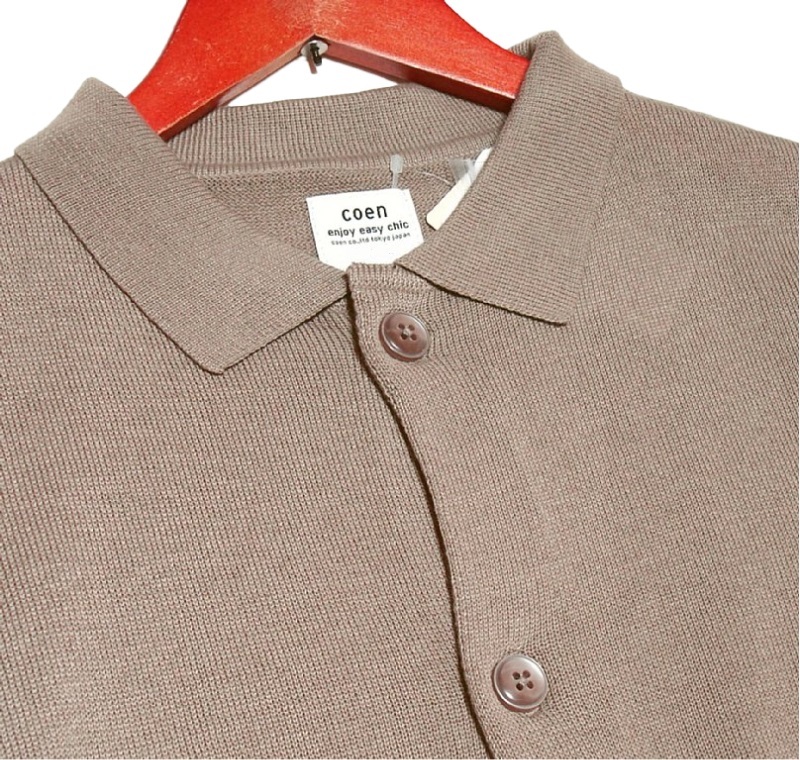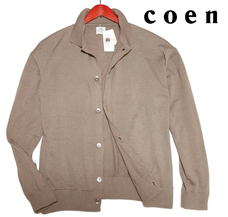 新品! コーエン coen ポロ衿 ニット カーディガン ベージュ (L) ☆ ユナイテッドアローズ メンズ ルーズシルエット 光沢 茶系 ★