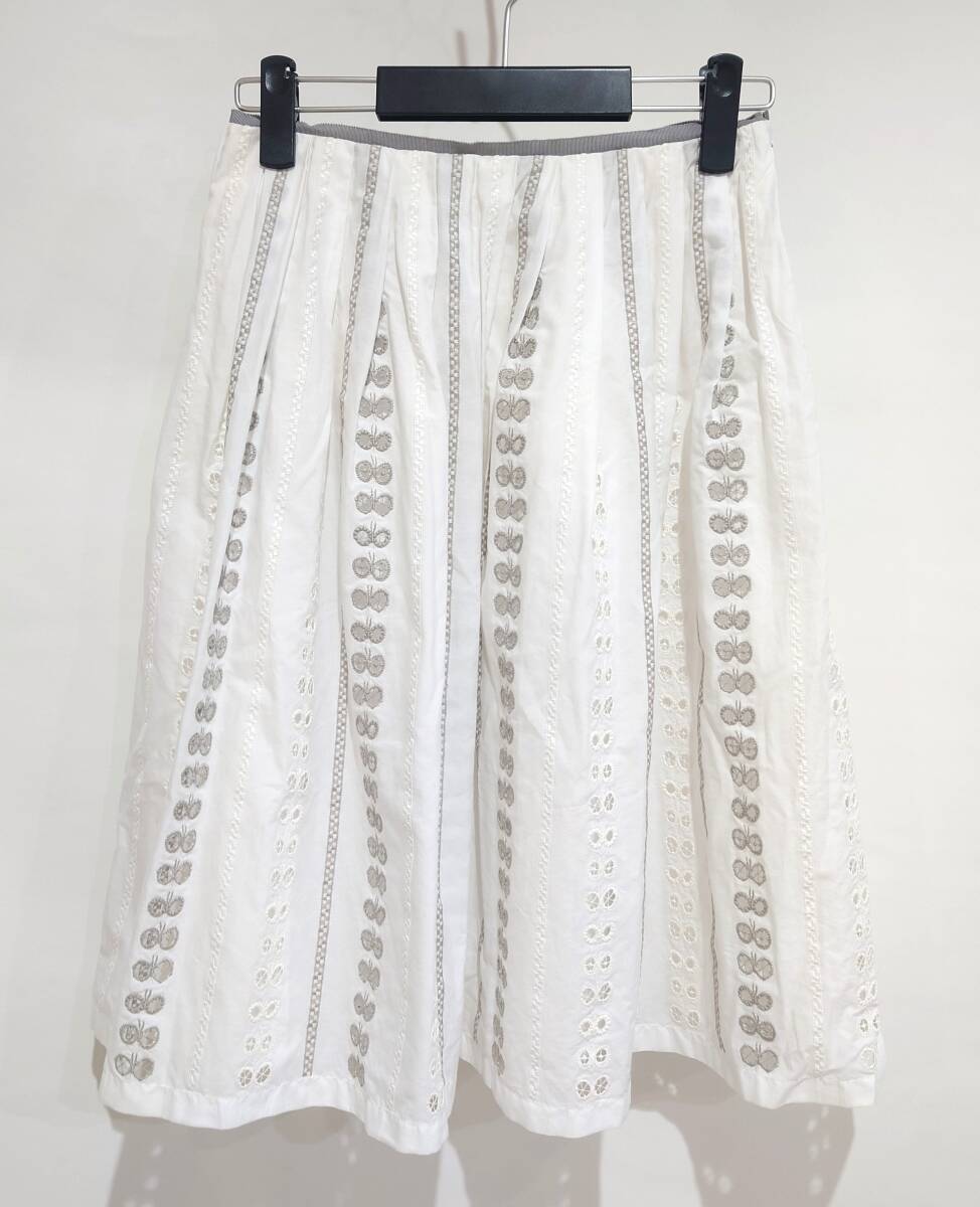 mina perhonen ミナ ペルホネン chiyo バタフライ 蝶 刺繍 スカート ホワイト 38 Y-325942