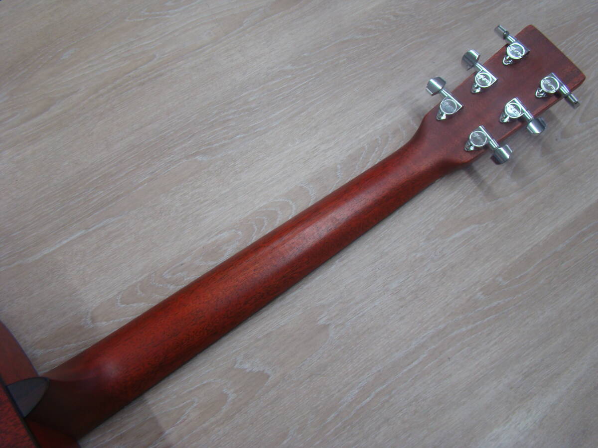 トップはシトカスプルース、マホガニーのサイド&バック、ネックもマホガニーだと思います。