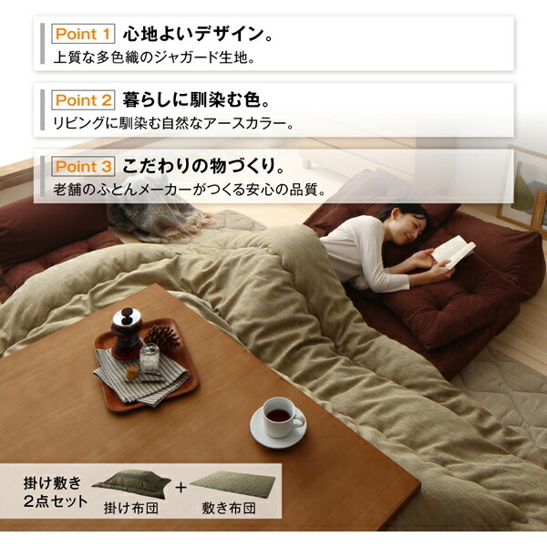 高級 ジャガードミックス織 国産こたつ布団 こたつ用掛け布団単品 6尺長方形(90×180cm)天板対応【こたつ布団カラー:カーキ】です。
