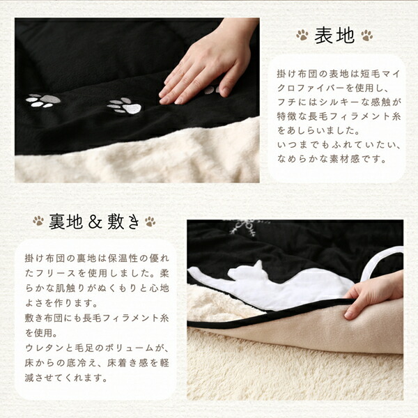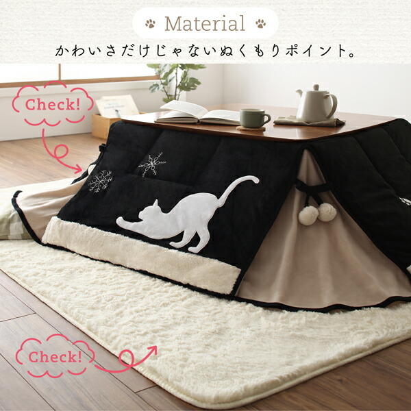 シルエットが可愛い! 猫柄省スペースこたつ布団 Lameynya レイミーニア こたつ用掛け布団単品 正方形(75×75cm)天板対応【こたつ布団カラー:ブラック】です。