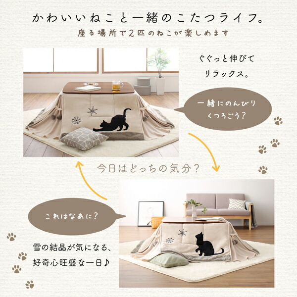 こたつ こたつ布団 おしゃれ シルエットが可愛い! 猫柄省スペースこたつ布団 こたつ用掛け布団単品 正方形(75×75cm)天板対応