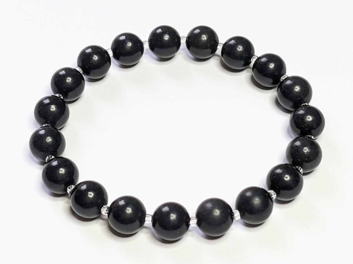※入手困難なため、わずかな在庫がなくなりましたら、販売終了させていただきます。 使用石 : 天然シュンガイト ロシア産 約8mm ロシアのカレリア共和国でのみで産出される希少な「シュンガイト」は、20億年前に形成された炭素鉱物で、唯一天然で「フラーレン」といわれる特殊な原子構成が含まれていて、フラーレンは抗酸化作用と治療効果があり、がん細胞の成長を遅らせるという実験結果も出ているそうです。 活性酸素やラジカルを消去する作用により、美肌効果や肌の老化防止効果があると言われています。 また、シュンガイトには電磁波や放射線を吸収する働きがあり、テレビ、パソコン、携帯電話などから発せられる電磁波から守ってくれると言われています。 ※炭素系鉱物であるシュンガイトの特性上、強く擦れると色が付きますので、ご注意下さい。 ポリウレタンゴム使用(修理用ゴム1回分付) 擦れ防止のため、玉と玉の間にビーズをセットしています。 サイズ : 内周:約16cm 内周の延長承ります。玉を追加します。 約2cm延長で追加料金:300円になります。 約2cm延長(内周:約18cm) 追加料金:300円 約4cm延長(内周:約20cm) 追加料金:600円 約6cm延長(内周:約22cm) 追加料金:900円 ※定形外郵便での発送をご希望の場合、定形外郵便の送料に追加料金を記載しておりますので、ご希望の内周の追加料金を選択して、かんたん決済のお手続きをお願い致します。 ※ゆうパケットポストmini、宅急便での発送をご希望の場合、別途追加料金お支払い専用出品をさせていだきます。 落札後、「お届け情報、お支払い情報、発送方法」を入力する前に、取引メッセージでご希望の長さをお知らせ下さい。 先にこちらからお送りする延長料金お支払い専用出品を落札していただき、「まとめ取り引きを依頼」していただければ、1回のかんたん決済のお手続きで完了で出来ます。 ※天然石のため、インクルージョンや傷など確認できる玉があります。 ※シュンガイトのネックレスも出品しています。 【備考】 画像はサンプル画像ですが、サンプル画像と遜色のない商品をお送りします。 出来るだけ実物に近い画像を使っておりますが、実物と多少色が異なる場合がありますので、ご了承下さい。 プレゼント梱包はご対応しておりませんので、ご了承下さい。 ノークレーム、ノーリターンでお願い致します。 | ||||
