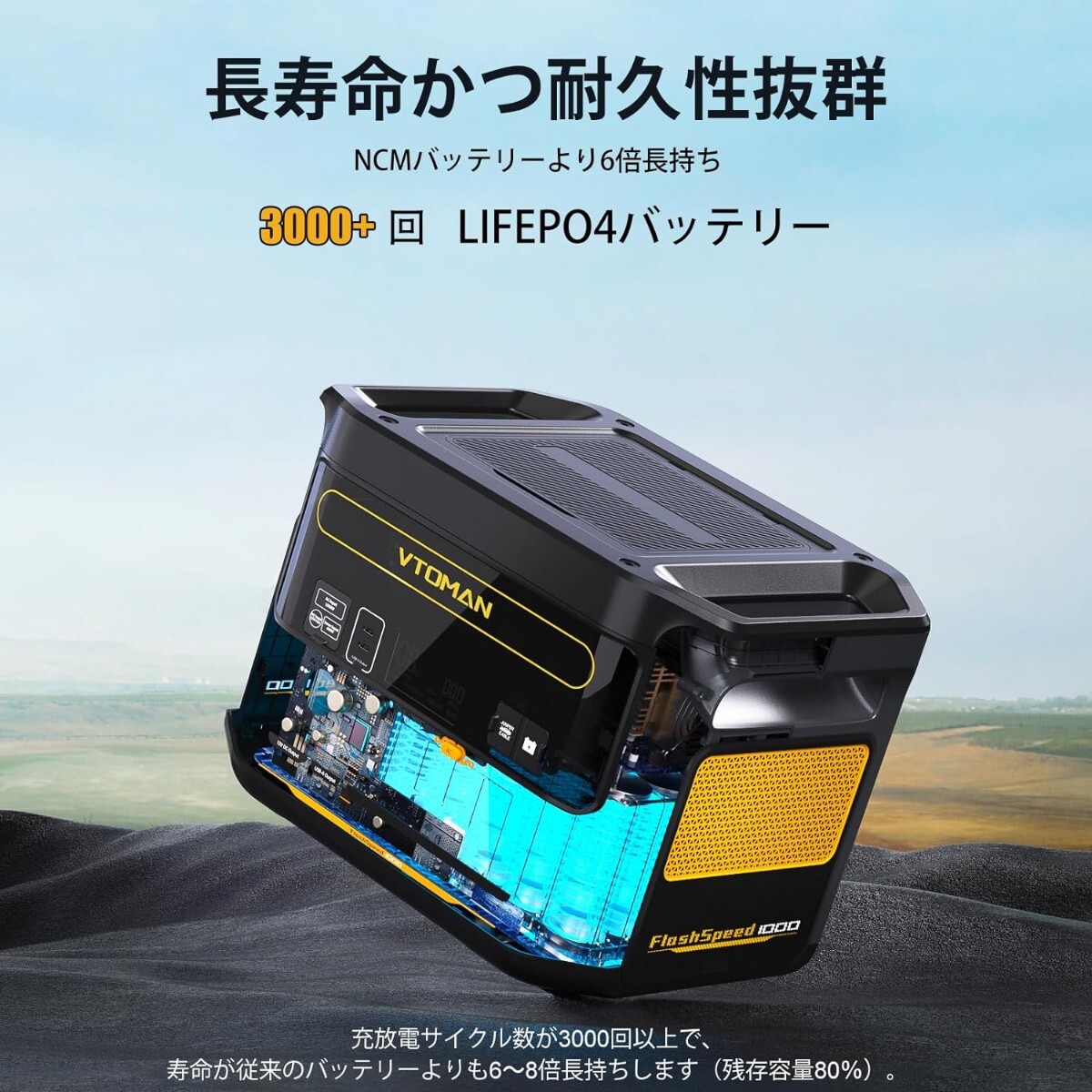 【優れた安全性】 LFP(LiFePO4)電池を搭載し、バッテリーサイクル寿命は3000回以上、バッテリー寿命は約10年。FlashSpeed 1000バッテリーは過電流、過電圧、過放電を効果的に防ぐバッテリー管理システム(BMS)も搭載しています。