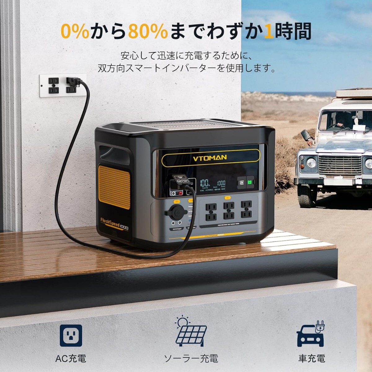 【スピーディに完全充電】 VTOMAN FlashSpeed 1000は、AC入力時、わずか1時間で完全充電が可能です。素早く充電できるため、次のアクティビティにすぐに移れます。