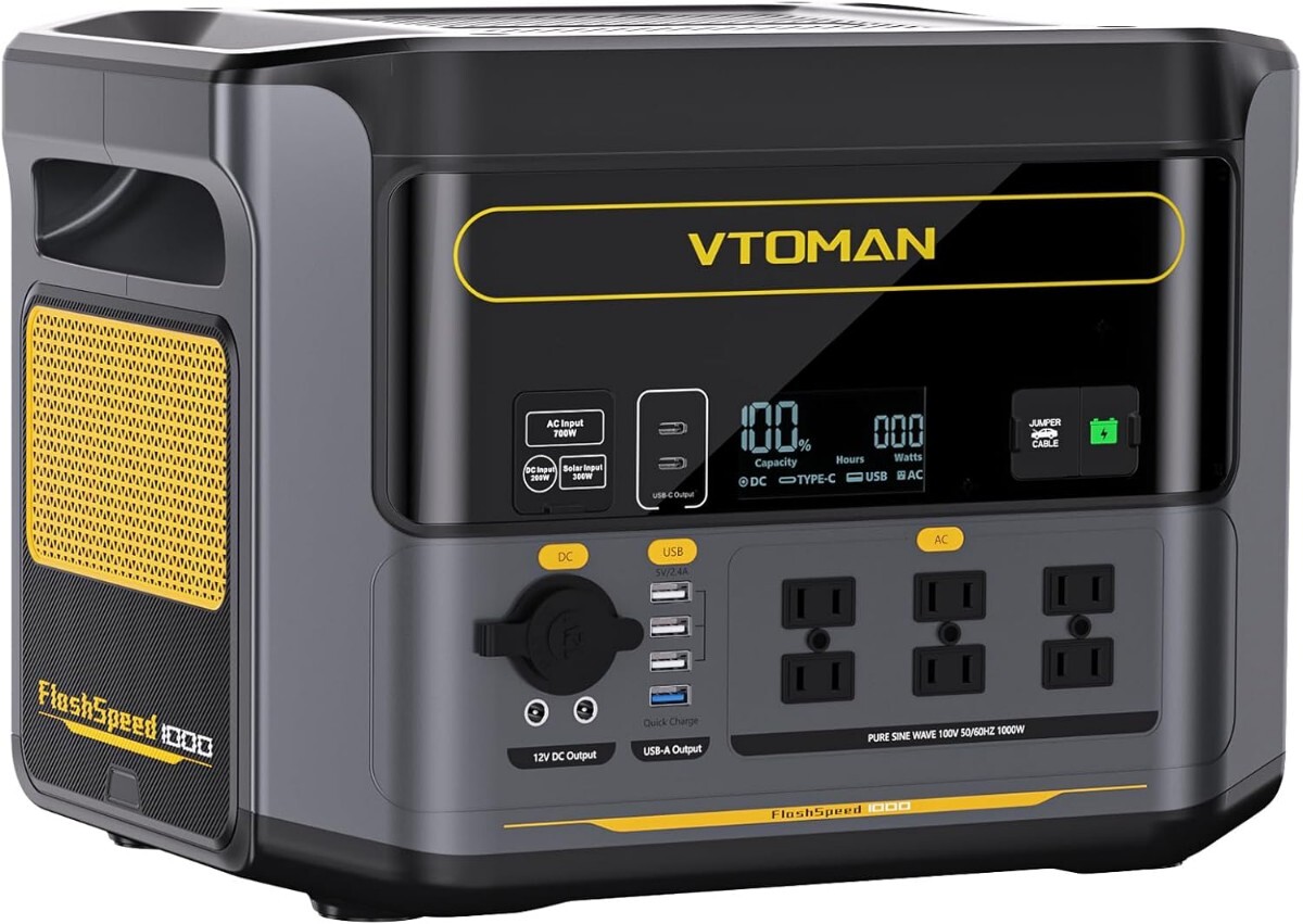 VTOMAN FlashSpeed 1000 ポータブル電源 大容量 828Wh 60分満充電 リン酸鉄リチウムイオン電池 長寿命 BMS電池保護 純正弦波軽量 AC(定格1000W サージ2000W)15出力ポー V-Beyond UPS機能 アウトドア キャンプ 車中泊 防災
