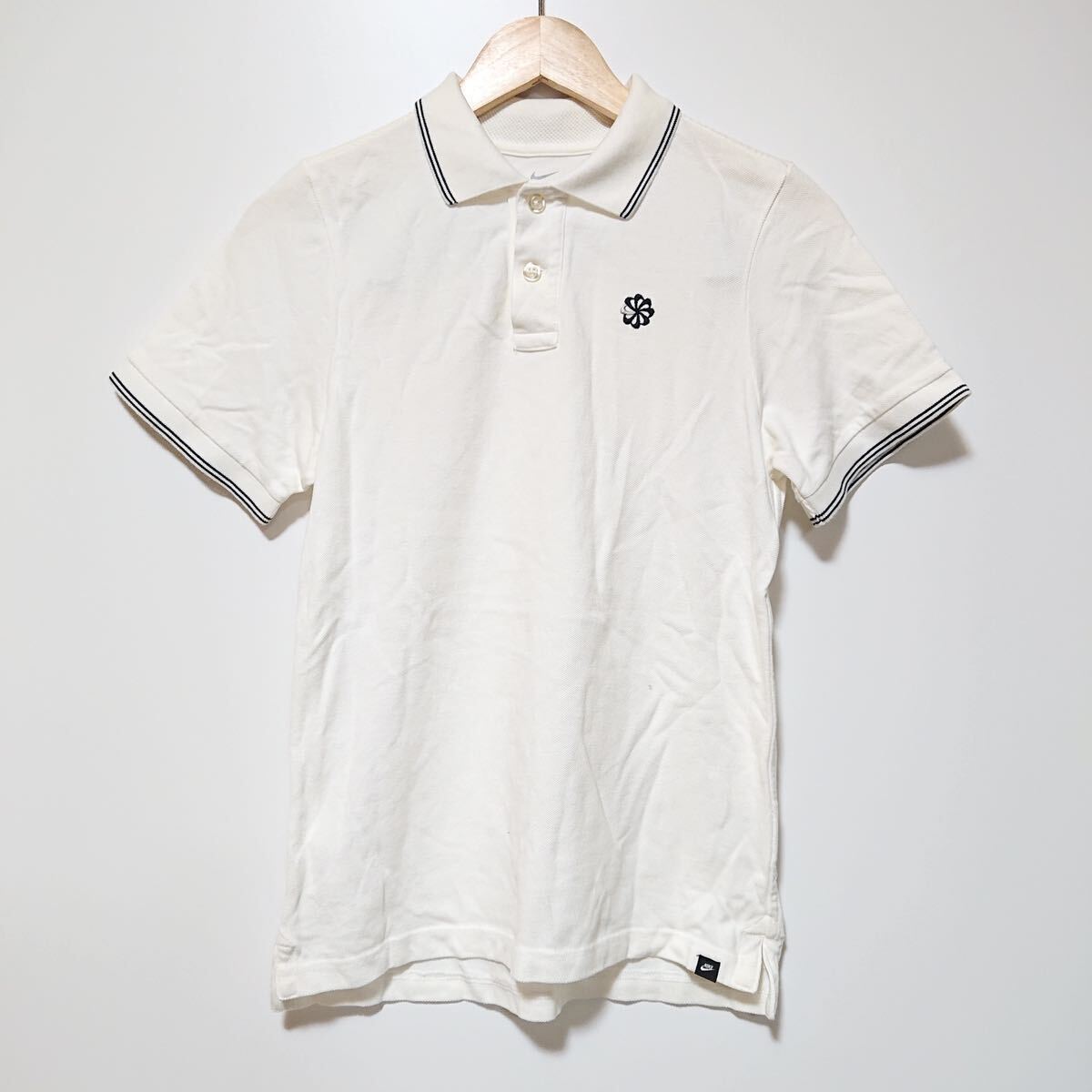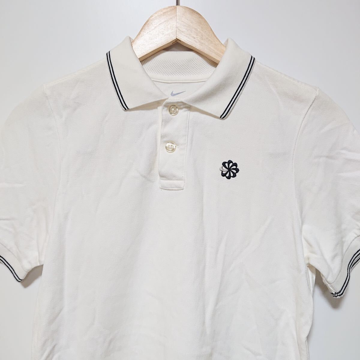H8630gg NIKE(ナイキ) サイズM 145/72 (140cm~150cm) 半袖ポロシャツ ホワイト キッズ 子供服 綿100% 風車刺繍 古着カジュアル かっこいい