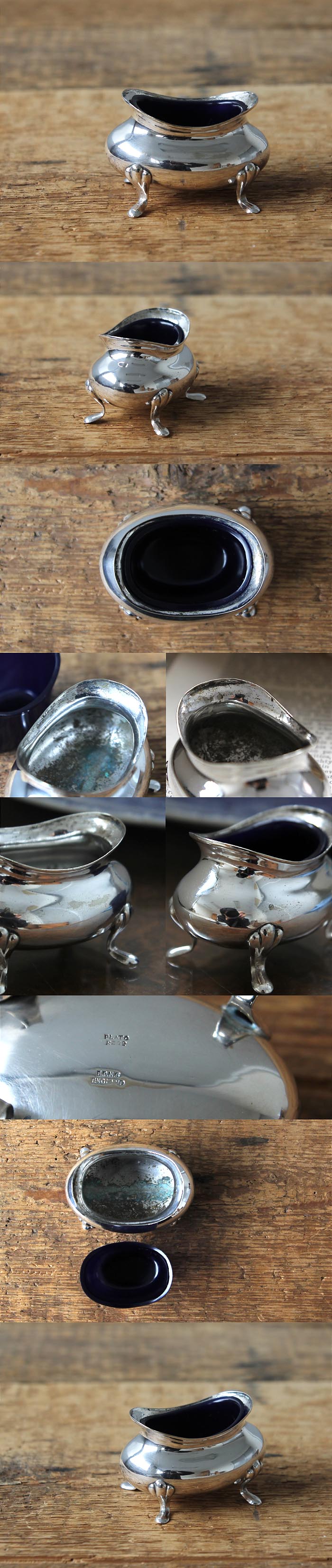 コバルトブルーの樹脂製内皿付き。EPNS ENGLAND刻印あり。